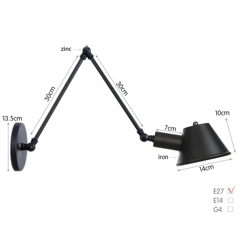 Винтаж промышленные настенные светильники регулируемый металлический рычаг прикроватные светильники, Гостиная Спальня декор для потолка светодиодный крепеж для настенных светильников