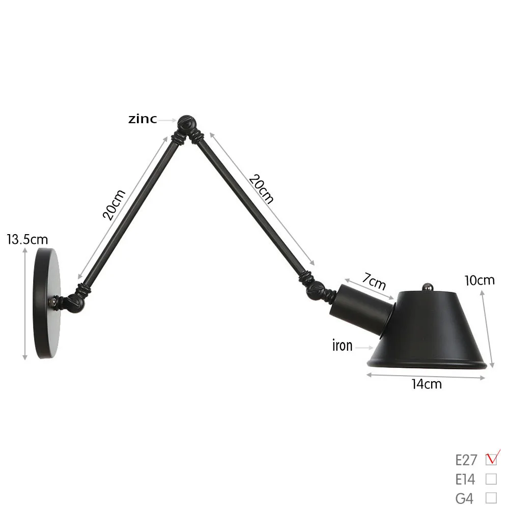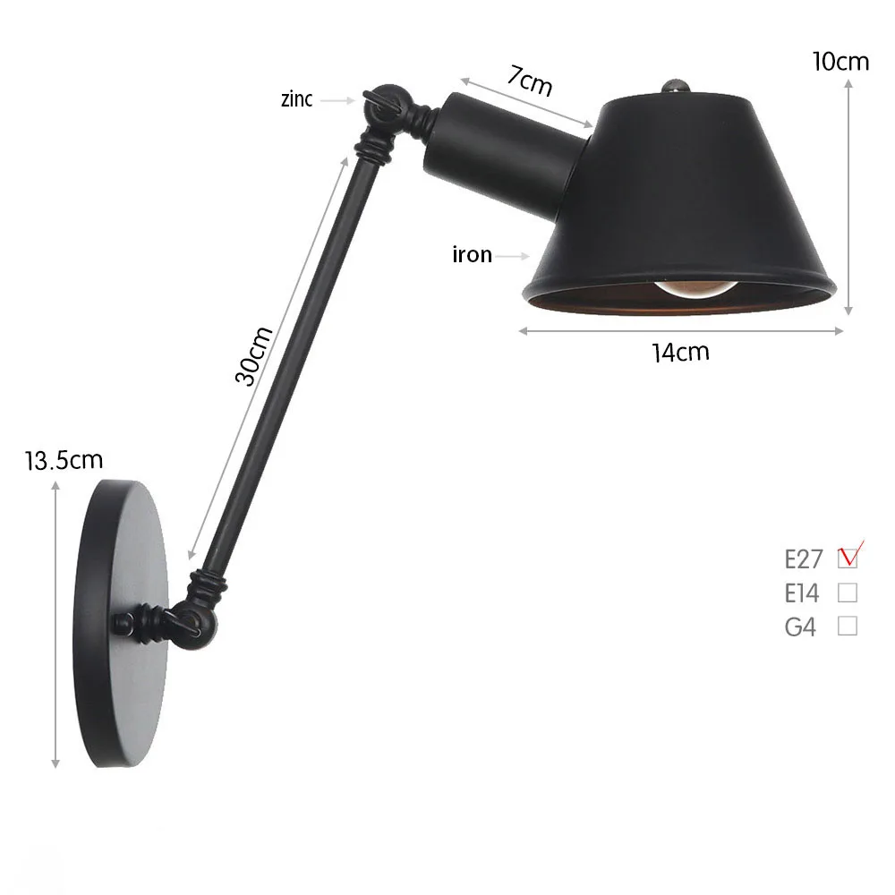 Винтажные промышленные настенные светильники регулируемые металлические прикроватные бра гостиная спальня декор для потолка светодиодный крепеж для настенных светильников