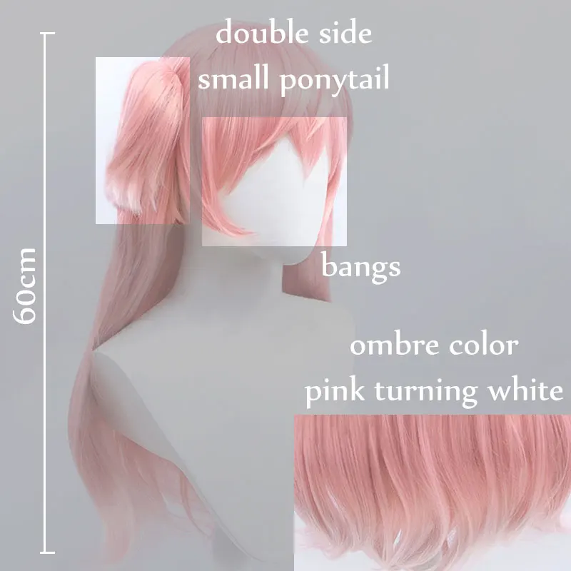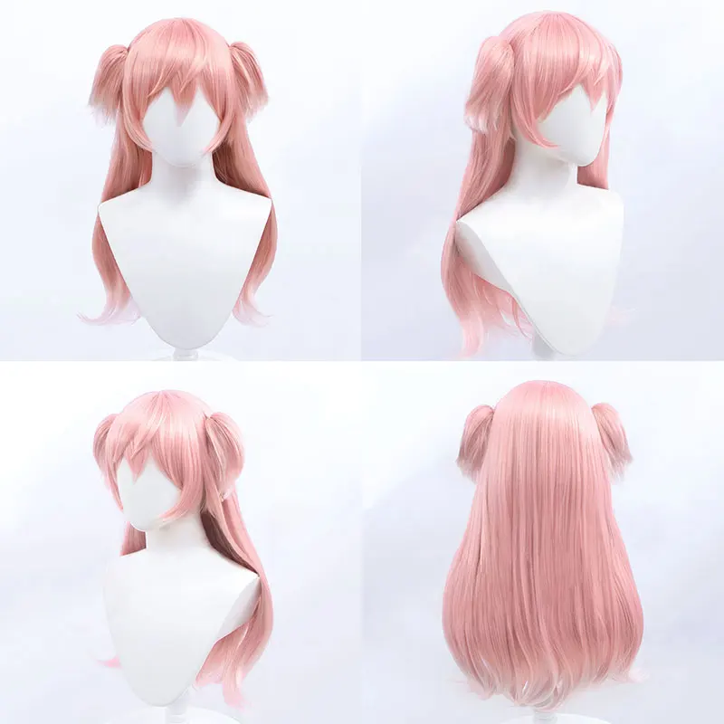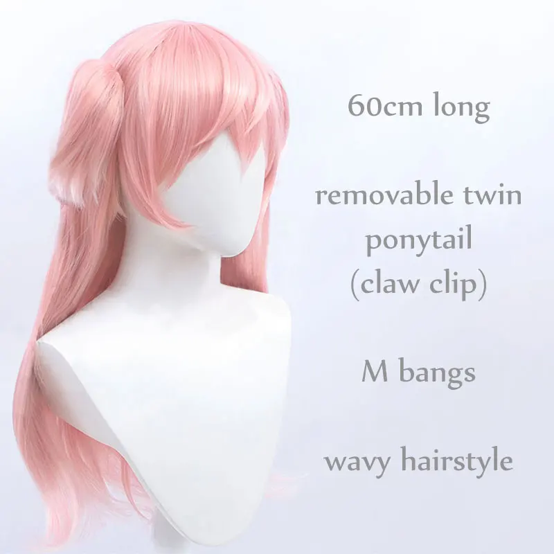 Искусственные парики для косплея Yanfei с челкой, розовые ударные кусочки волос Genshin, парик для конского хвоста для женщин, вечерние волнистые, мудрые невинности