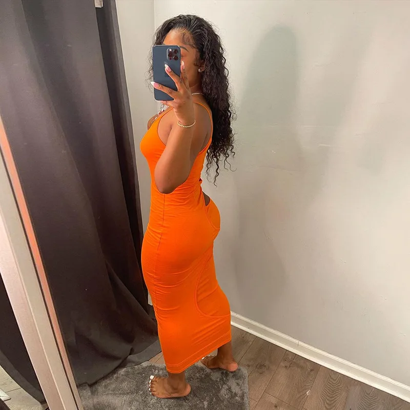 Aushiya летнее платье без рукавов, на лямках, с V образным вырезом длинное платье с цветочным принтом, длинное платье открытое облегающее платье с открытой спиной Длинные платья оранжевого и белого цветов в стиле хип Robe Femme