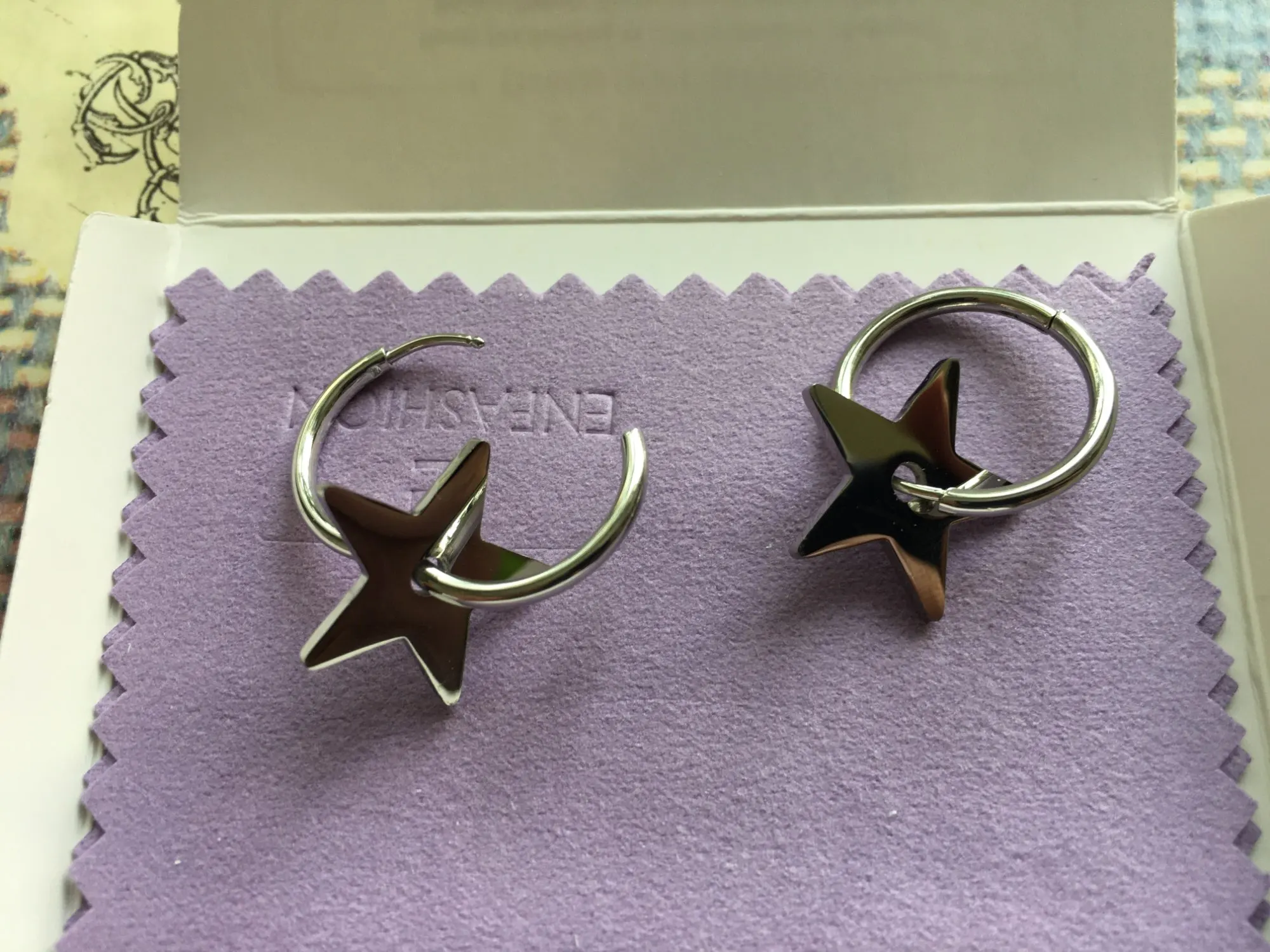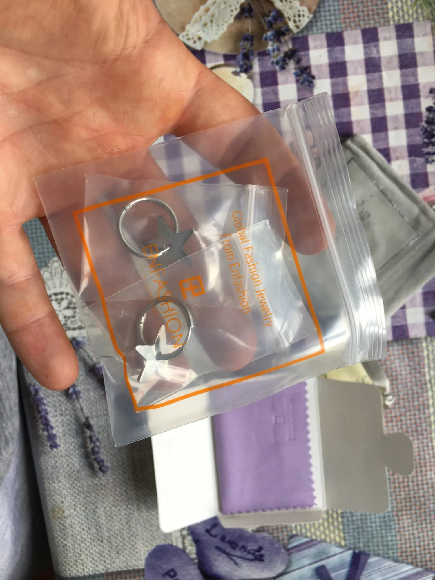 Сережки на той час у продавця коштували 10.45 дол. та придбав за 1 цент так як виграв у генераторі енергії!!! Сережки виглядають багато, крута упаковка — коробочка із картону (щоб відкрити розрізав, так як зверху ще скотчем заклеїли) самий комплект сережок був замотаний ще у пупирчасту плівку. Комплект складається із торбиночки — для зберігання, серветки — для очищення сережок, кожна сережка була в окремому пакетику і обоє були ще в 1 пакетику на застібці! Щодо пакування та комплектації — дуже добре! Сережки також круті, матеріал якісно відшліфований (як дзеркало) і виглядають круто! Як будуть носитися не скажу, але думаю, що не повинні потемніти! Однозначно рекомендую і товар і продавця! До Києва прийшли десь за 15 днів поштою Міст Експрес!!!