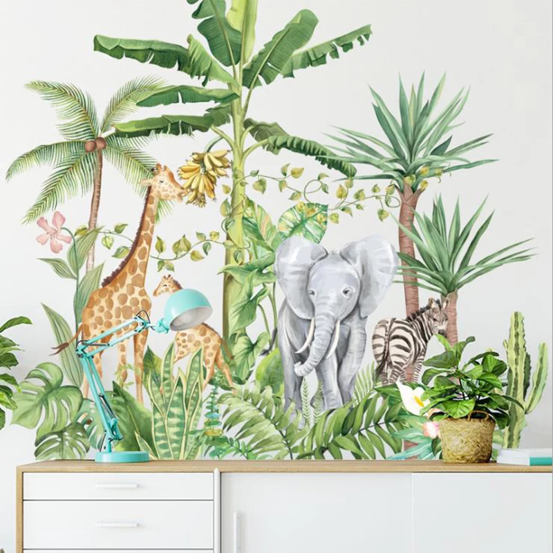 Мультяшный тропический Фотофон для детской комнаты, украшение для спальни, тропический лес, животные, слон, жираф, скандинавский стиль