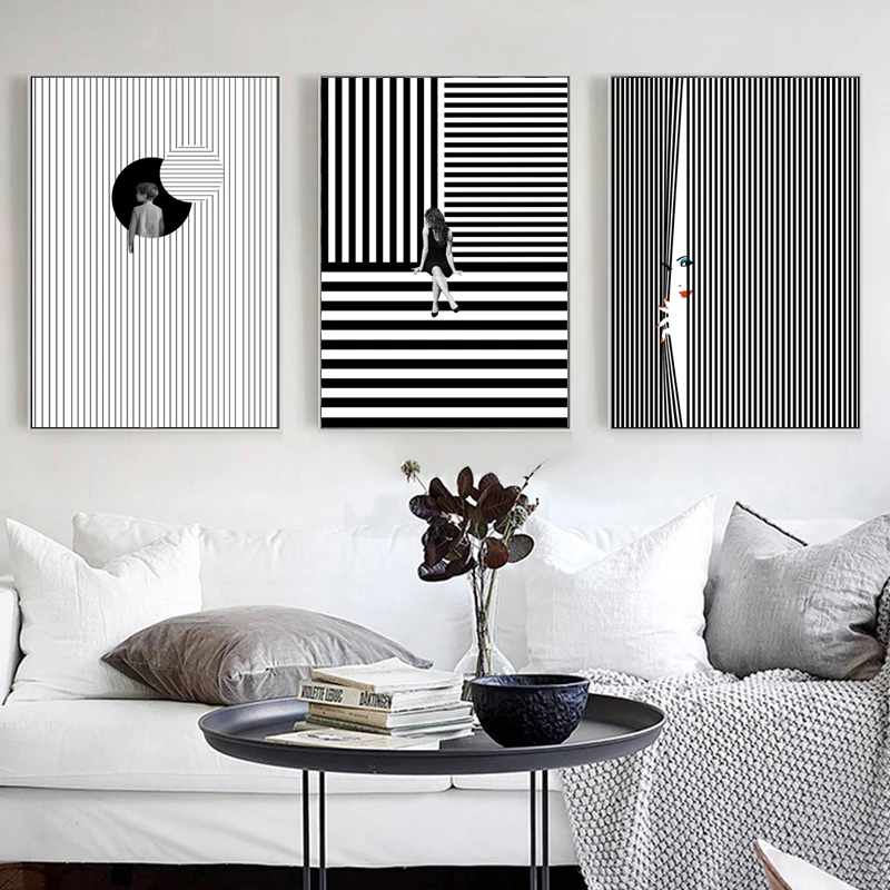 Абстрактная живопись минималистский рисунок Художественная печать плакатов геометрический Nordic настенная живопись, холст черный, белый цвет изображения Гостиная домашний декор