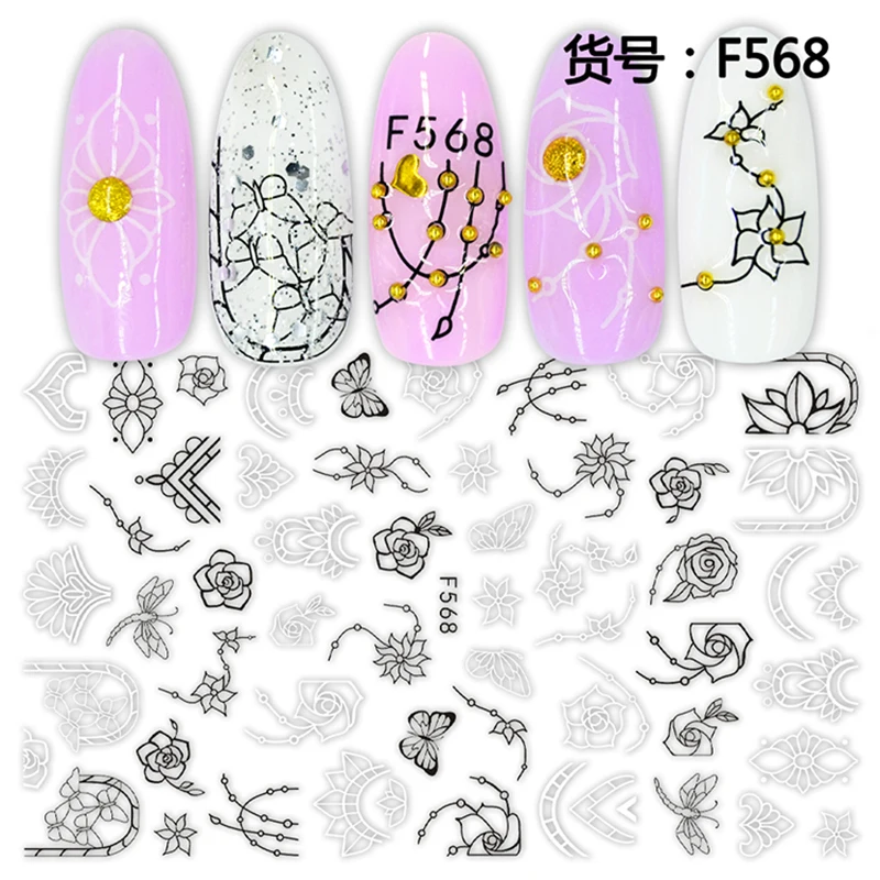 Ногти наклейки настенные украшения с черной полоской с рисунком бабочек и цветов листья самодельные Украшения для ногтей Креативный дизайн водяные знаки наклейки инструмент