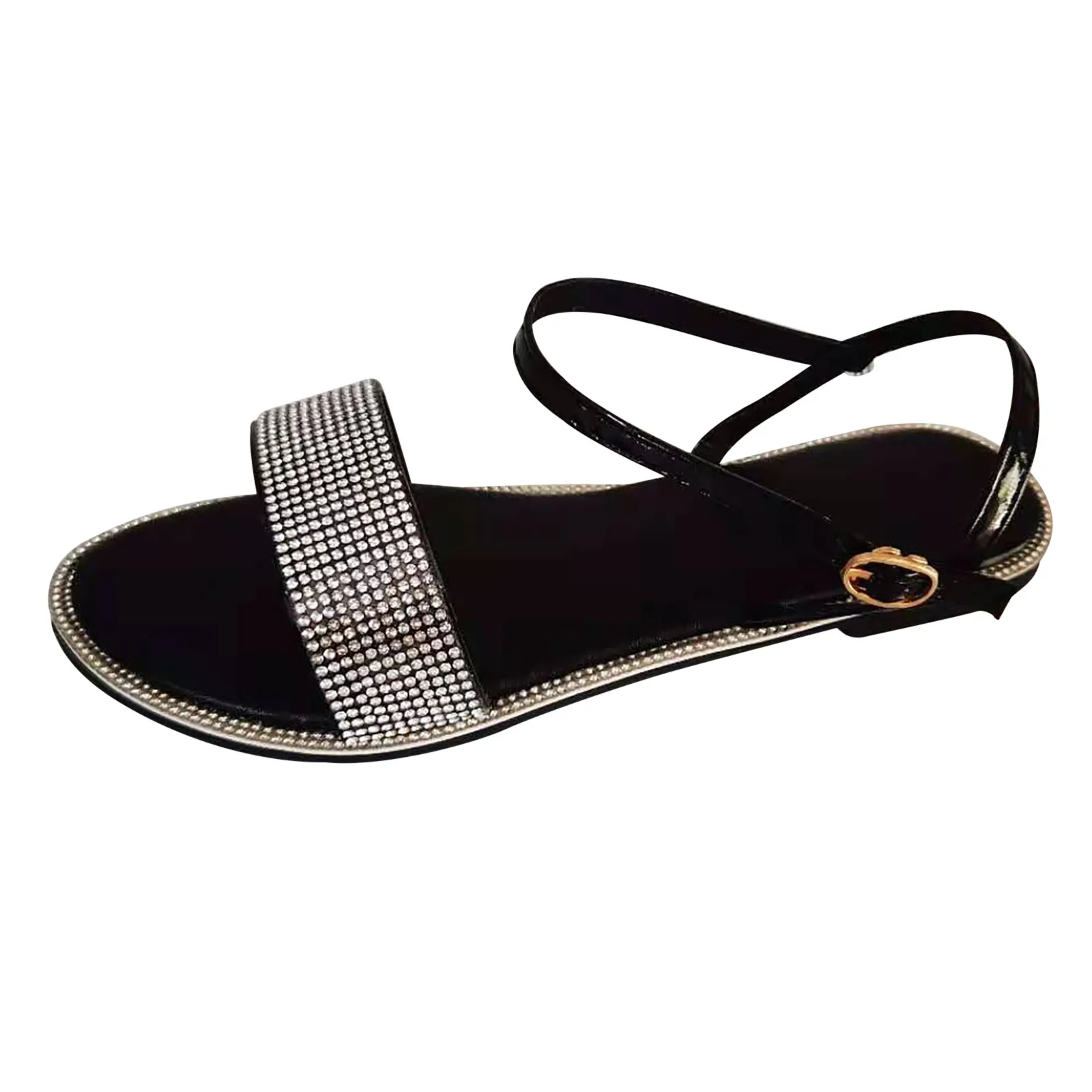 Женские летние сандалии на плоской подошве с круглым носком; Уличная Повседневная обувь с пряжкой и ремешком