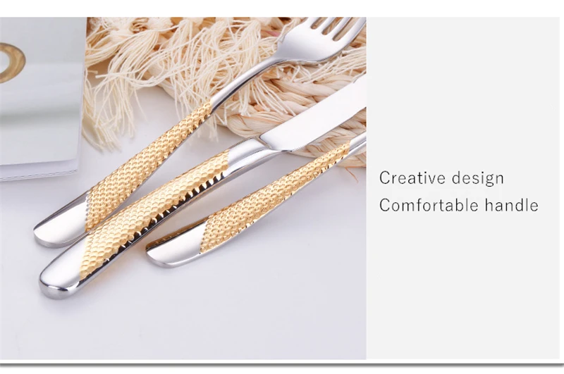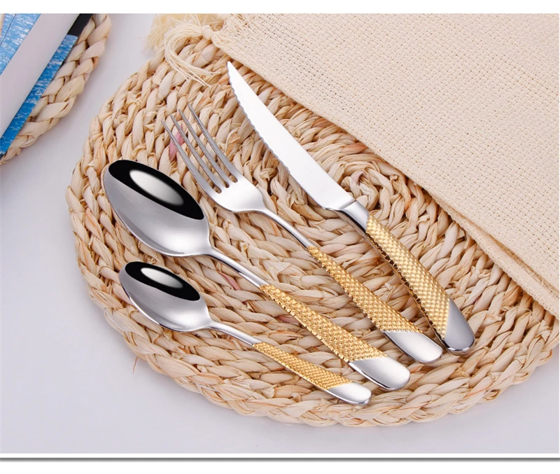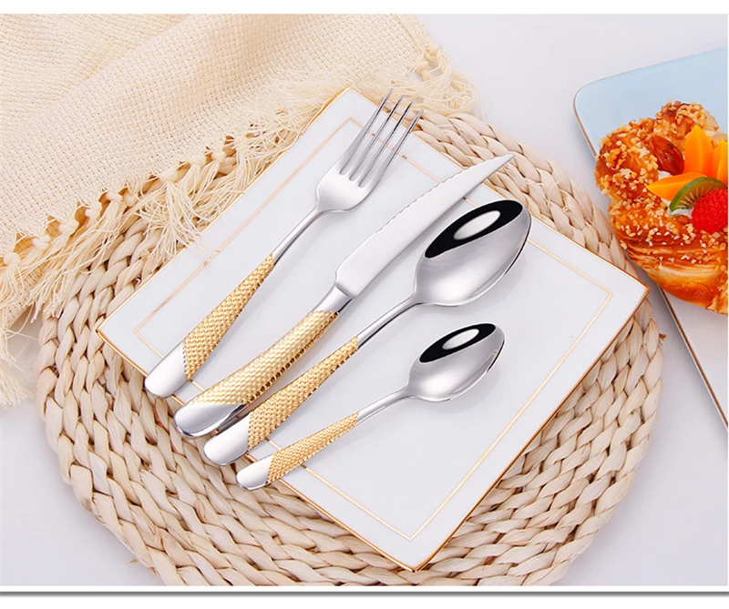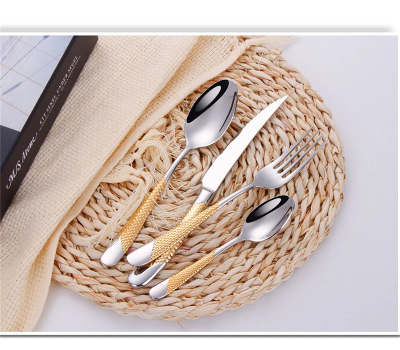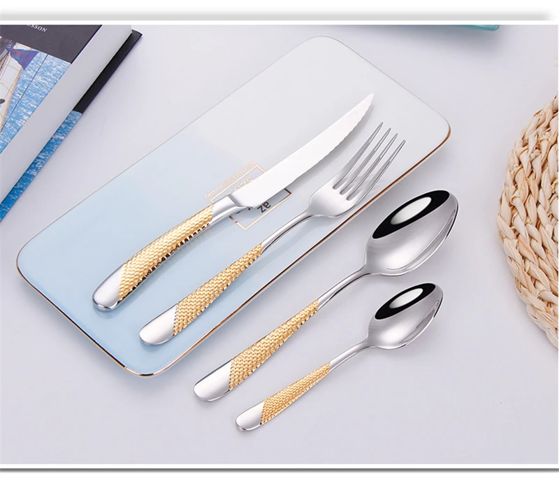 Нержавеющаясталь западные столовые приборы золотой нож с ручкой для стейка Вилка десертная ложка чайная ложка, столовые приборы Кухня отельная посуда расходные материалы