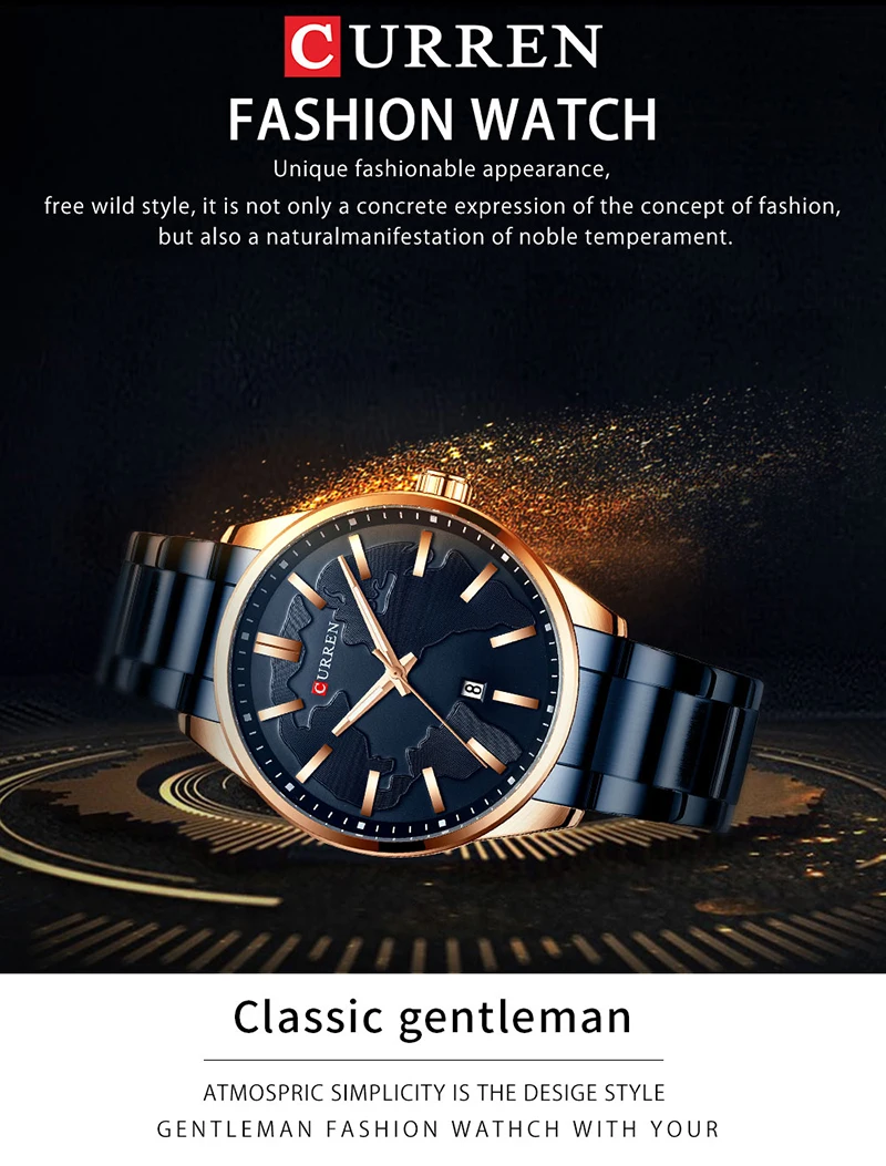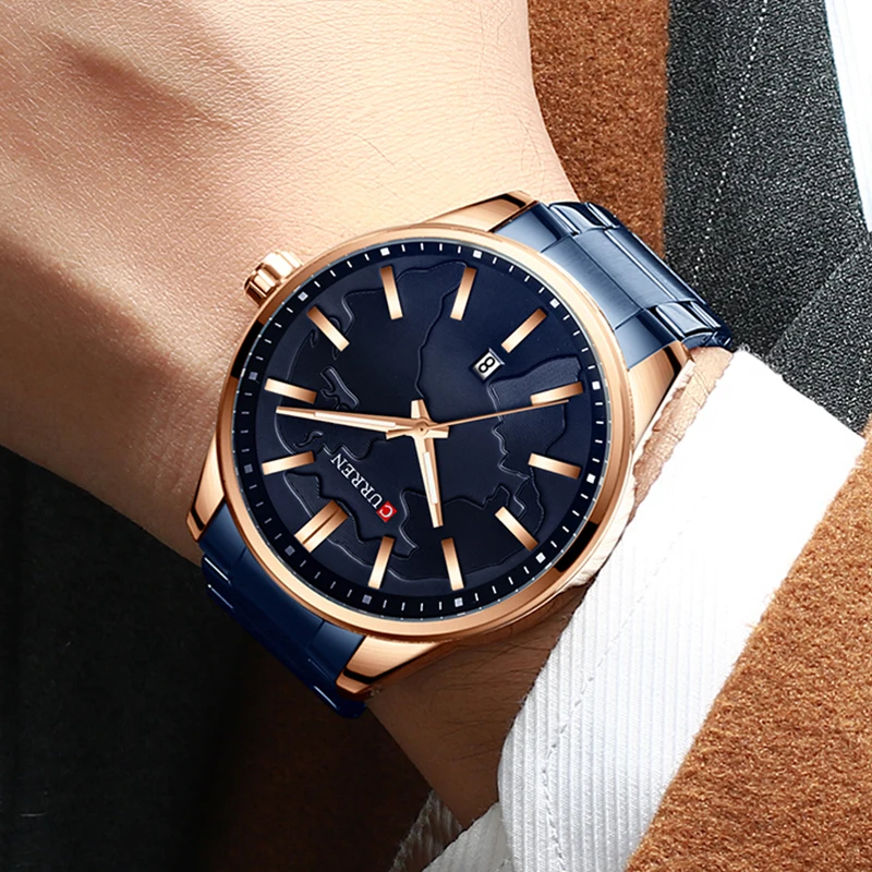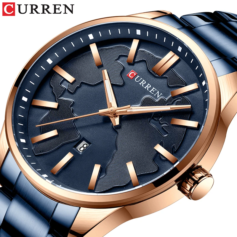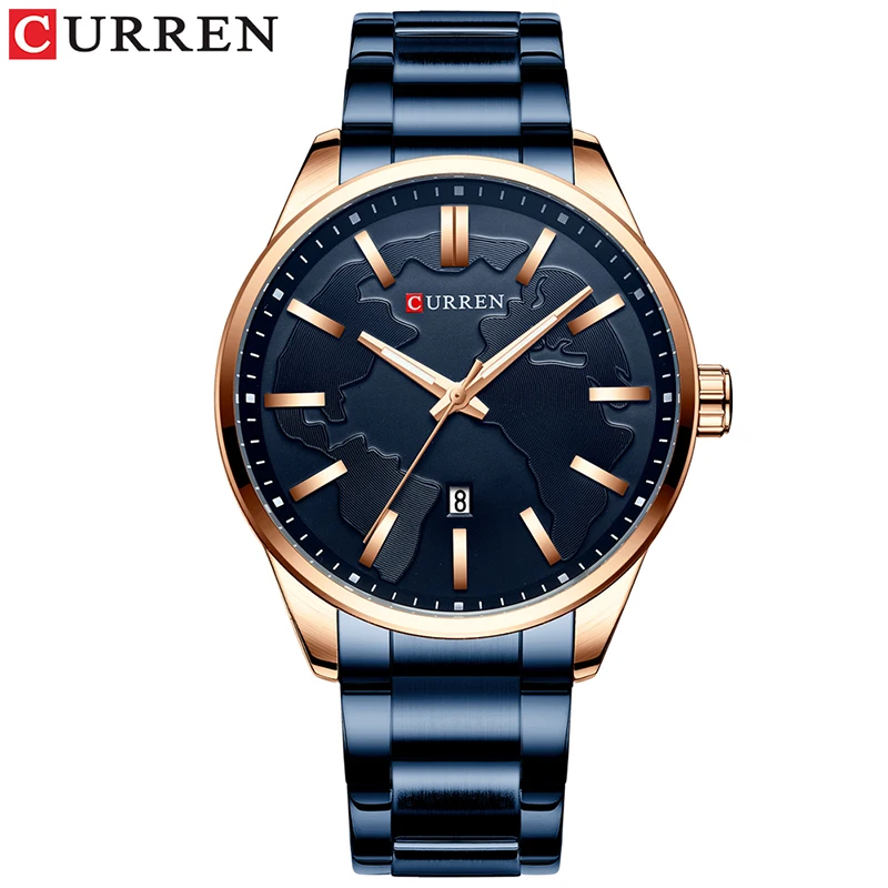 Часы CURREN Мужские кварцевые с креативным дизайном и циферблатом, деловые модные подарок из нержавеющей стали с датой