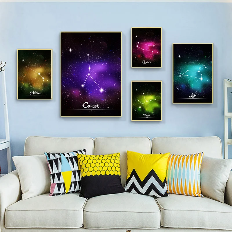 Картины с созвездиями для детской, настенные картины, холст, плакат, напечатанный астрологический знак, минимализм, картина геометрической формы, скандинавские детские украшения