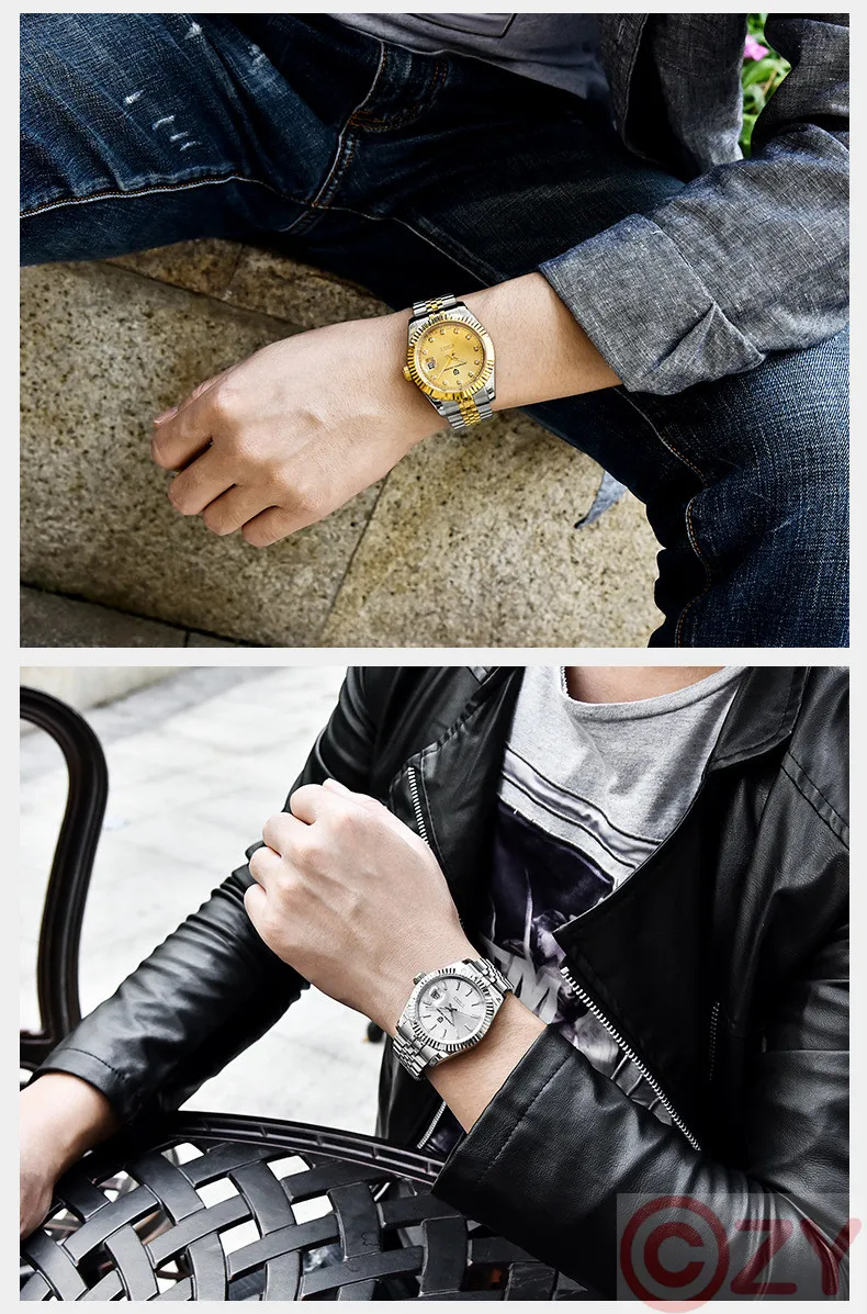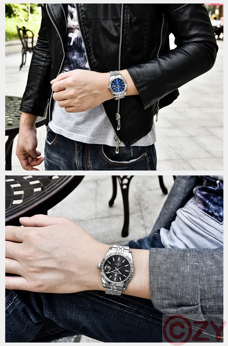 Часы мужские механические из нержавеющей стали, с автоподзаводом