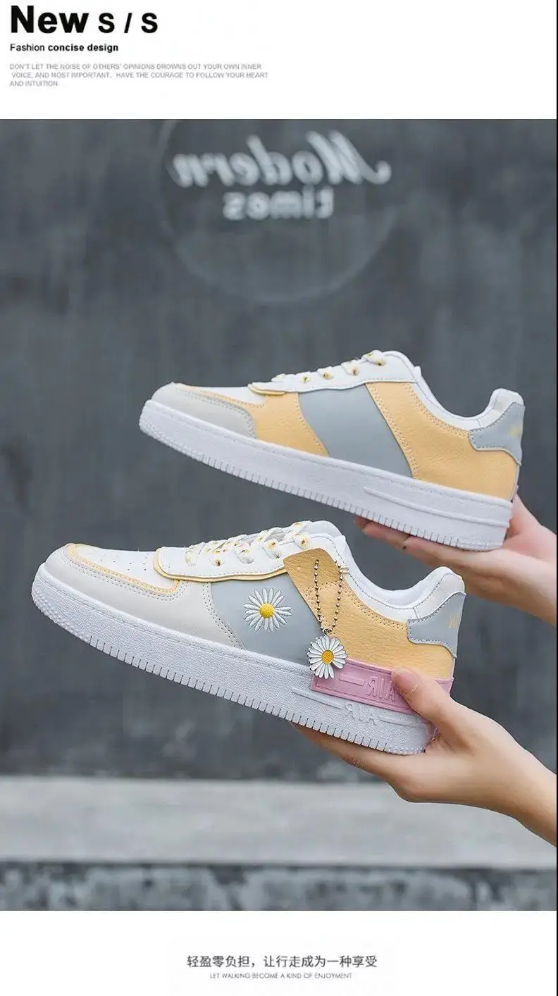 2021 Весенняя Корейская спортивная обувь xue sheng ban xie wang красная маленькая Маргаритка, Белая обувь, женская обувь, кроссовки