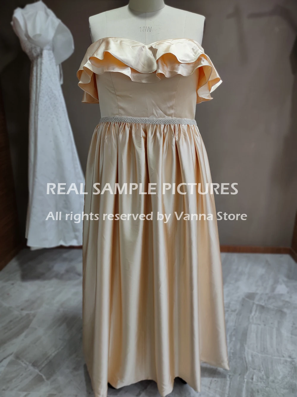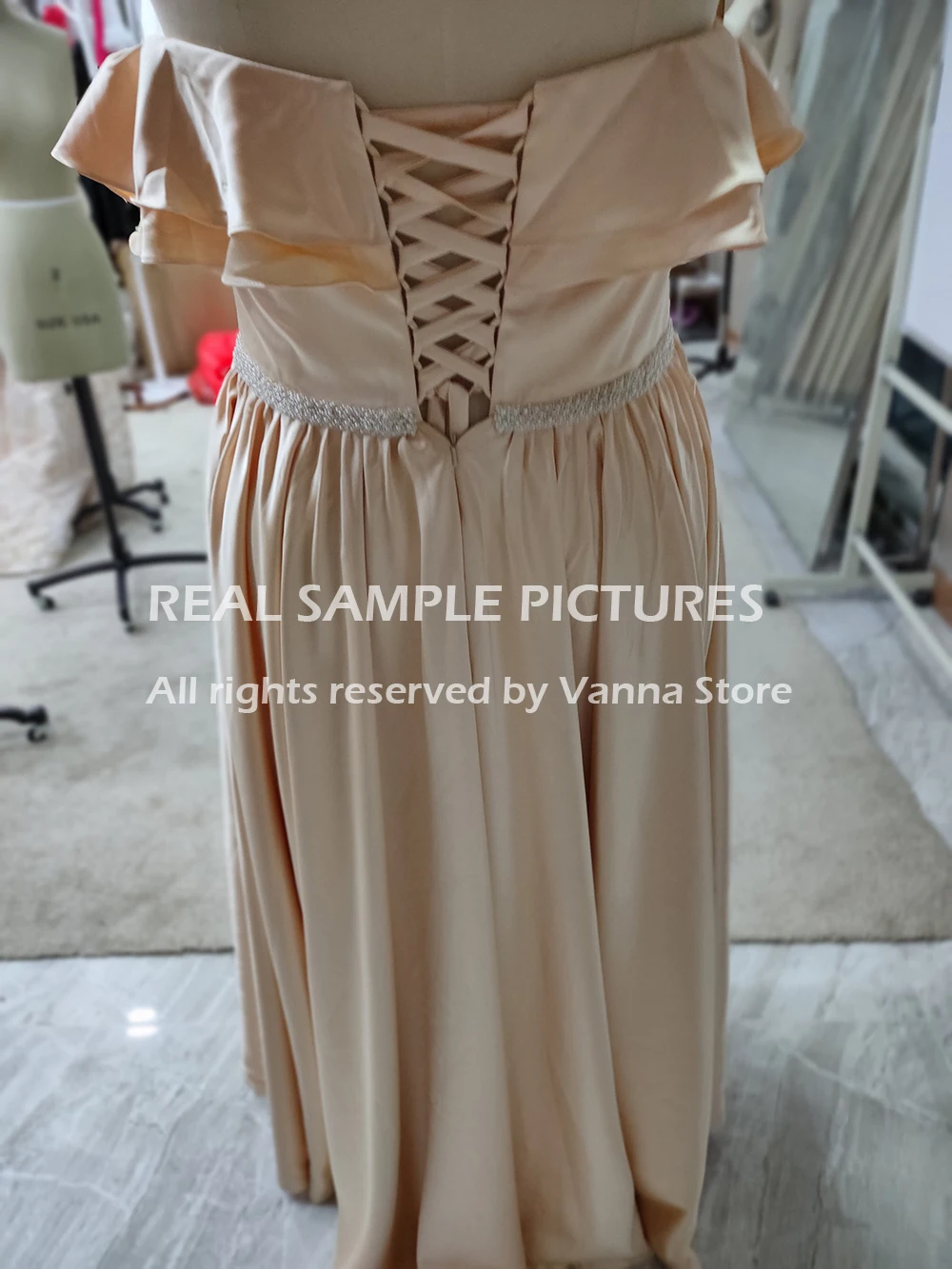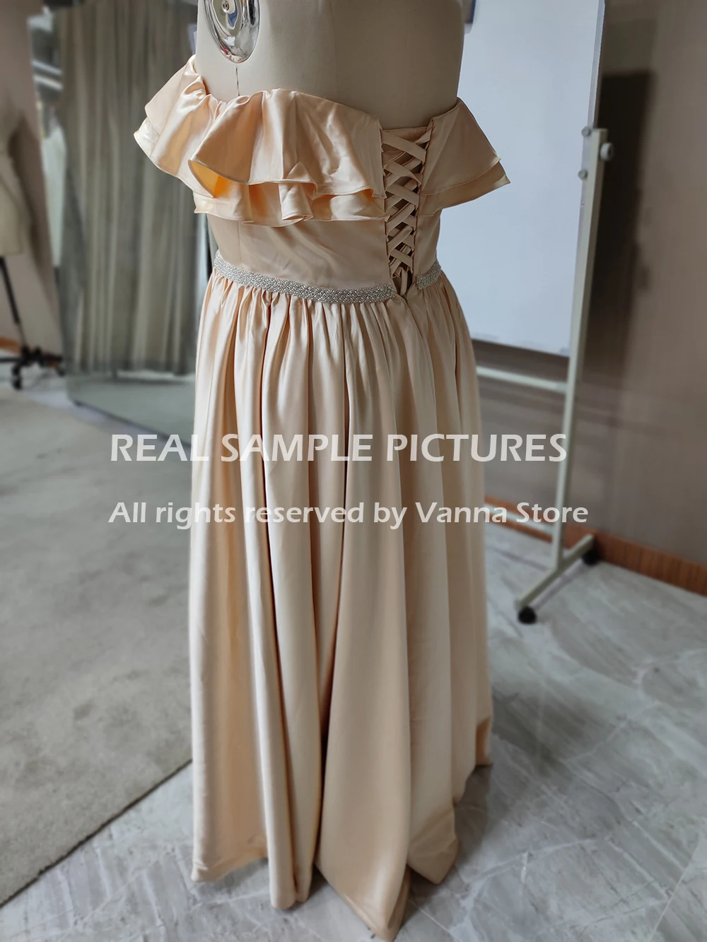Свадебное платье с открытыми плечами, винтажное ТРАПЕЦИЕВИДНОЕ, на шнуровке, с бисером, атласная с рюшами, 2021, Элегантное свадебное платье, размера плюс