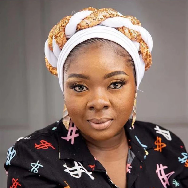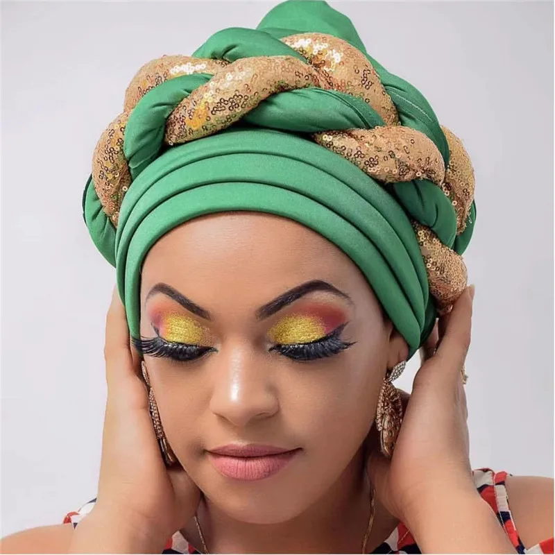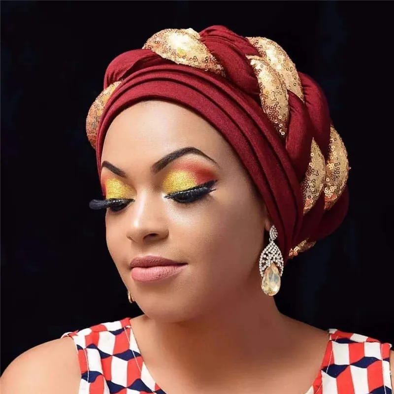 Для женщин головной убор геле тюрбан Кепки в африканском стиле Для женщин голова-Обёрточная бумага Кепки Авто геле в нигерийском стиле тюрбан в стиле геле лучший продаваемый Авто геле с пайетками Кепки