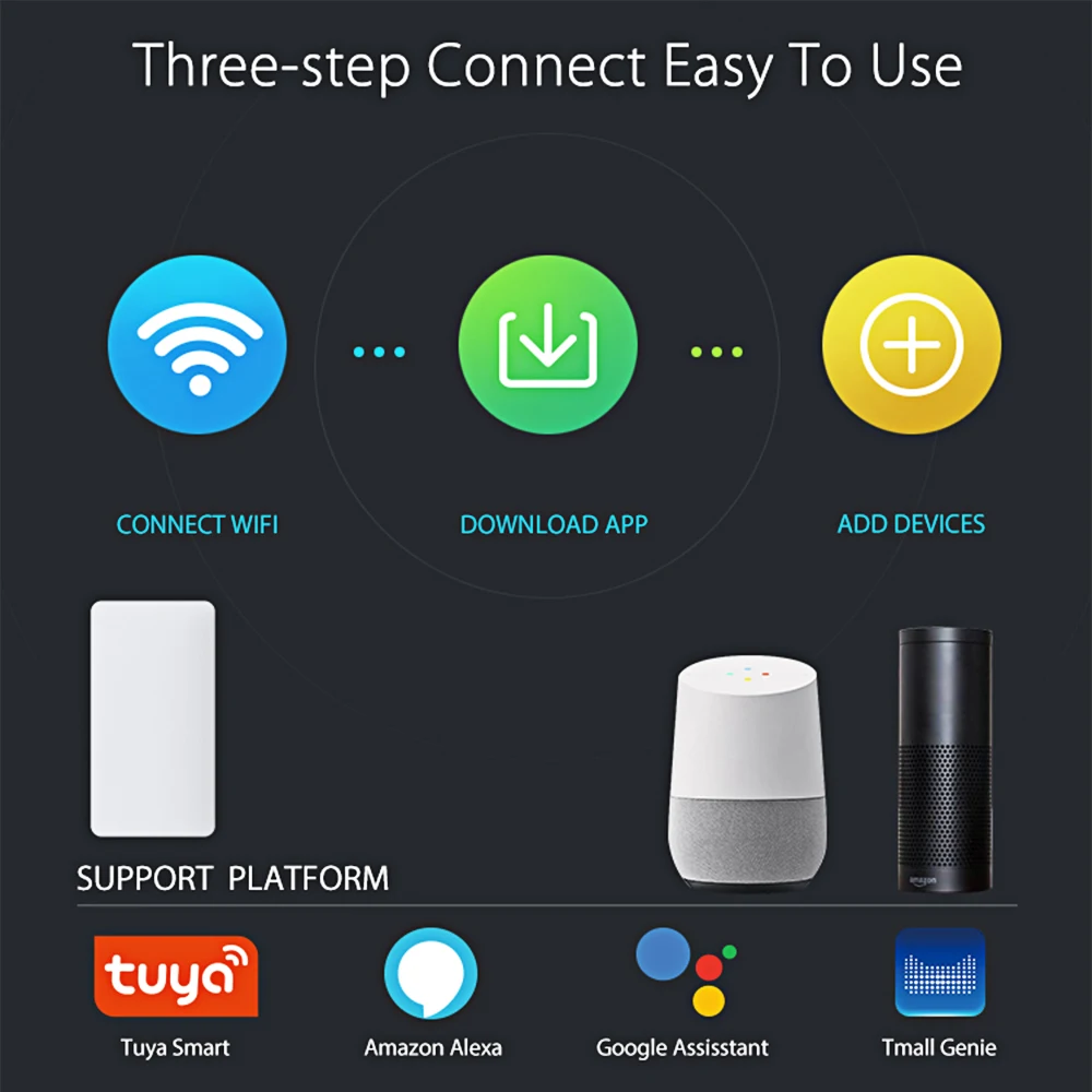 -100% без проводов, легко установить-соединение с водяным клапаном Tuya-подключение Wi-Fi 2,4G, не требуется концентратор-когда датчик обнаруживает утечку воды, приложение будет push-уведомления-2 * AA питание от аккумулятора (не входит в комплект), с функцией оповещения о низком заряде батареи-Загрузите бесплатное приложение «TuyaSmart» или «Smart Life» на iOS и Android