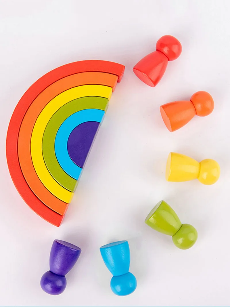 Деревянные радужные блоки, деревянные блоки для баланса, игрушки Мо...