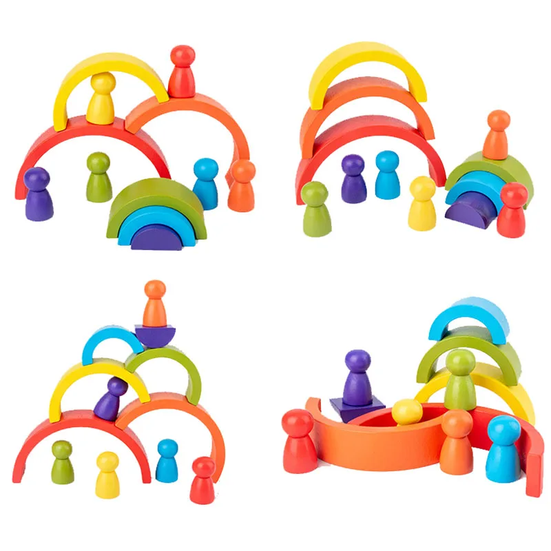 Радужные деревянные игрушки, полукруги, строительные блоки, прямоуг...