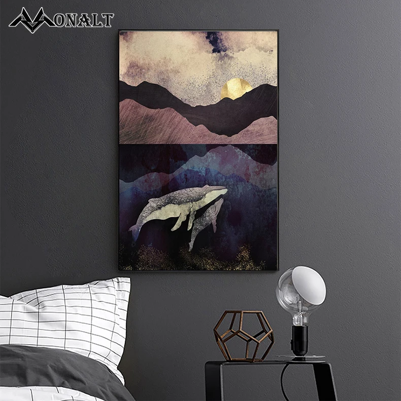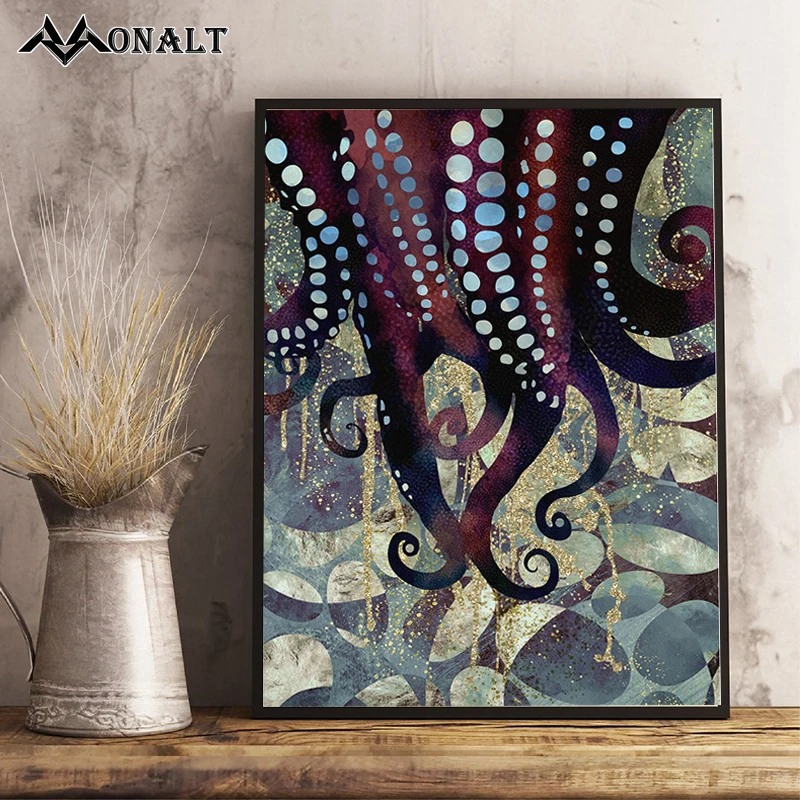 Роскошная золотая Медуза, Кит, осьминог, стена, искусство на холсте, абстрактная живопись, океан, животные, рыба, украшение для гостиной, настенные картины