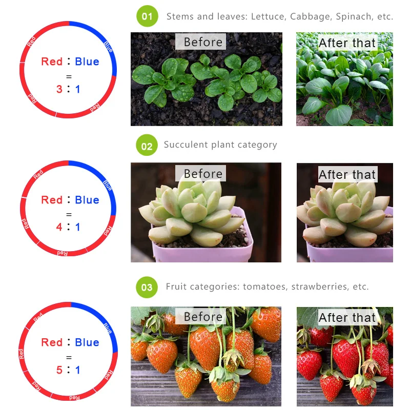 1. Мы предлагаем красный: синий = 3 : 1 и красный: синий = 4 : 1 и красный: синий = 5 :1 три вида светодиодный ленты на выбор.