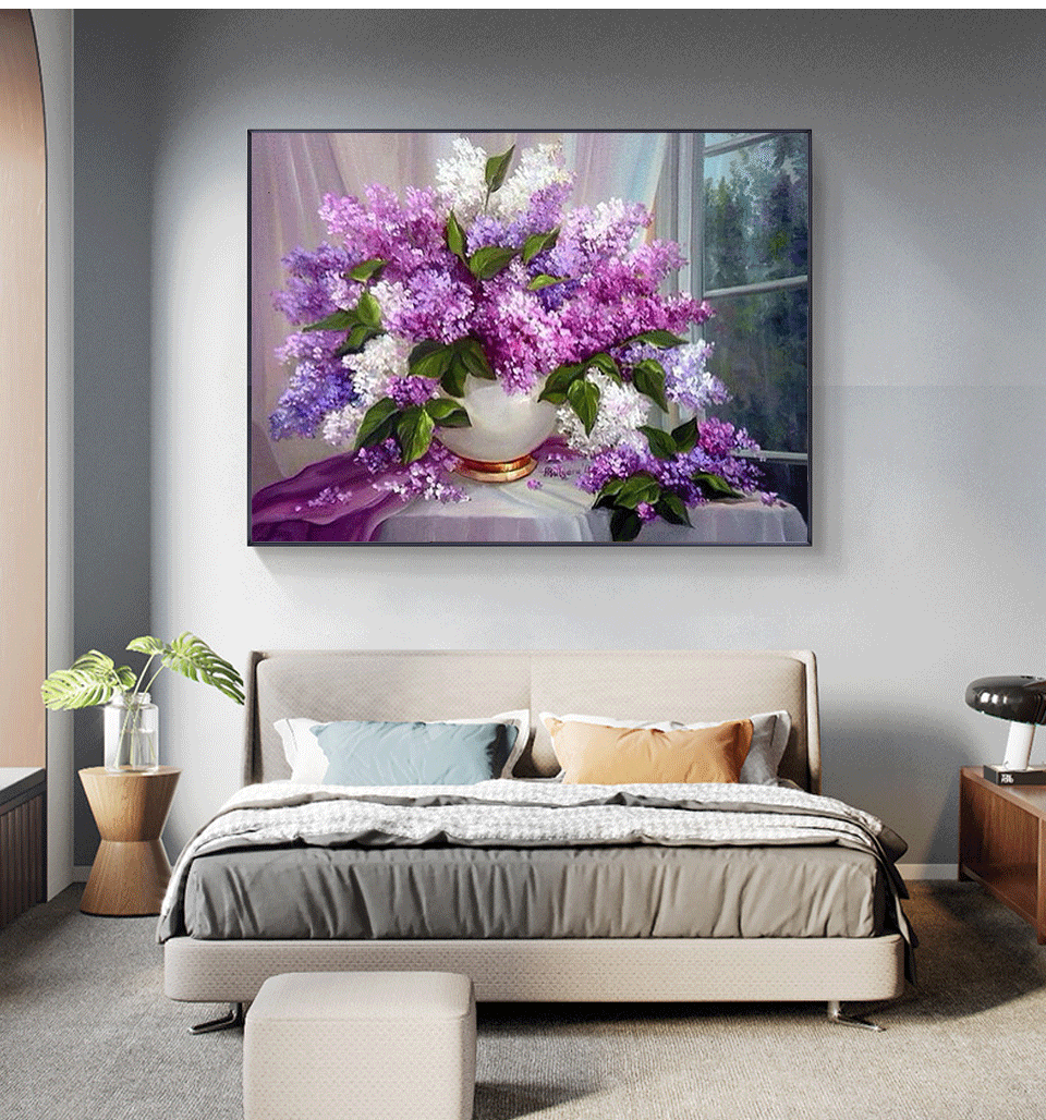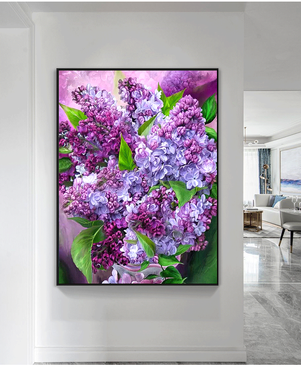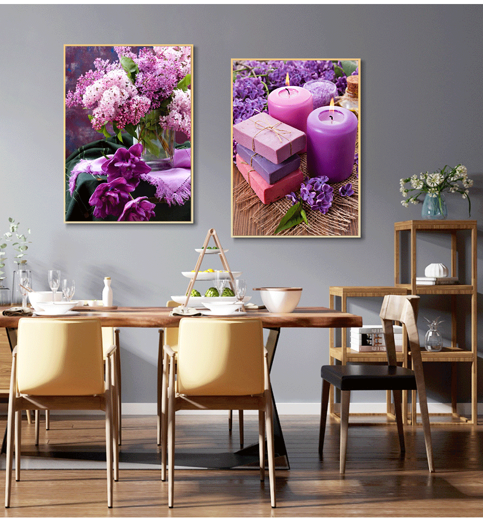 Полноразмернаякруглая Алмазная вышивка сделай сам, картина с цветами, украшение для дома, вышивка крестиком, фиолетовая, сиреневая Бриллиантовая картина