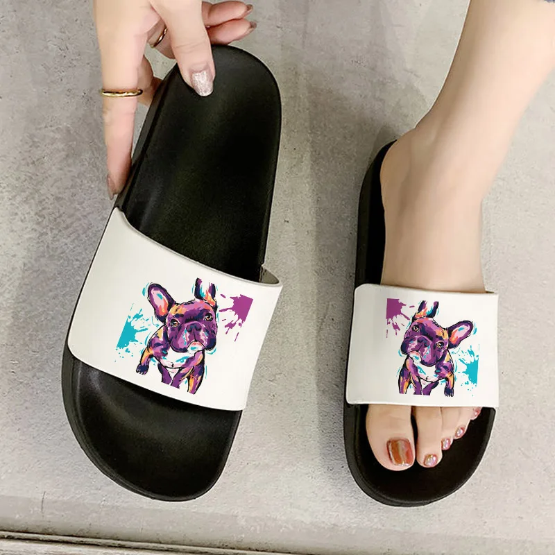 Туфли женские с принтом французского бульдога, 90s, уличные модные сандалии, 2021 г., женская обувь, удобные шлепанцы, женские шлепанцы