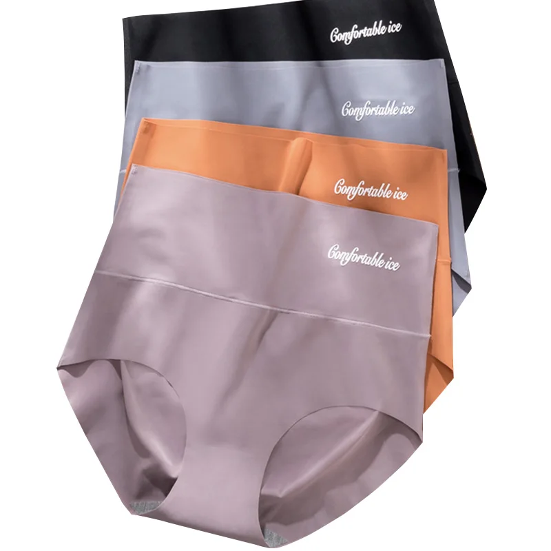 4 шт.лот, женские сексуальные трусики, бесшовное нижнее белье, шелковые трусы с высокой талией, комфортное нижнее белье, большие размеры, трусики на бедрах # F