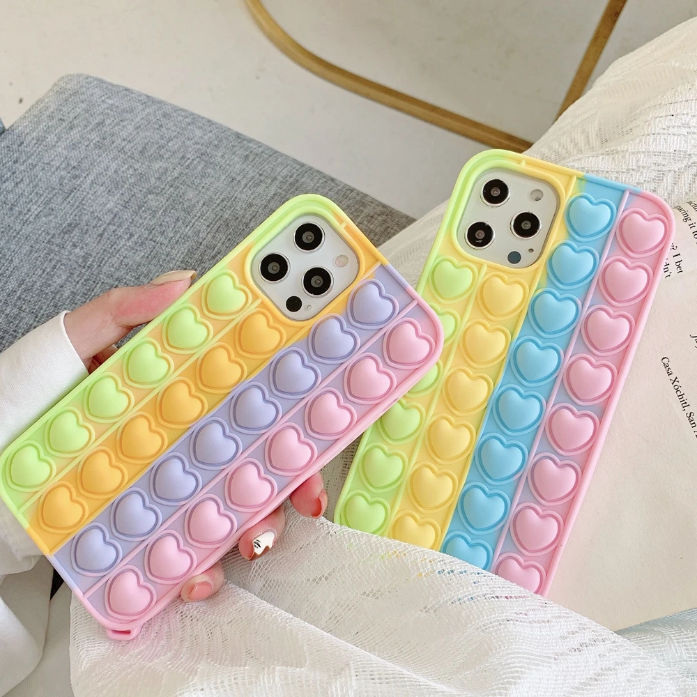 Модный силиконовый чехол с пузырьками в виде сердечек для Iphone 13...