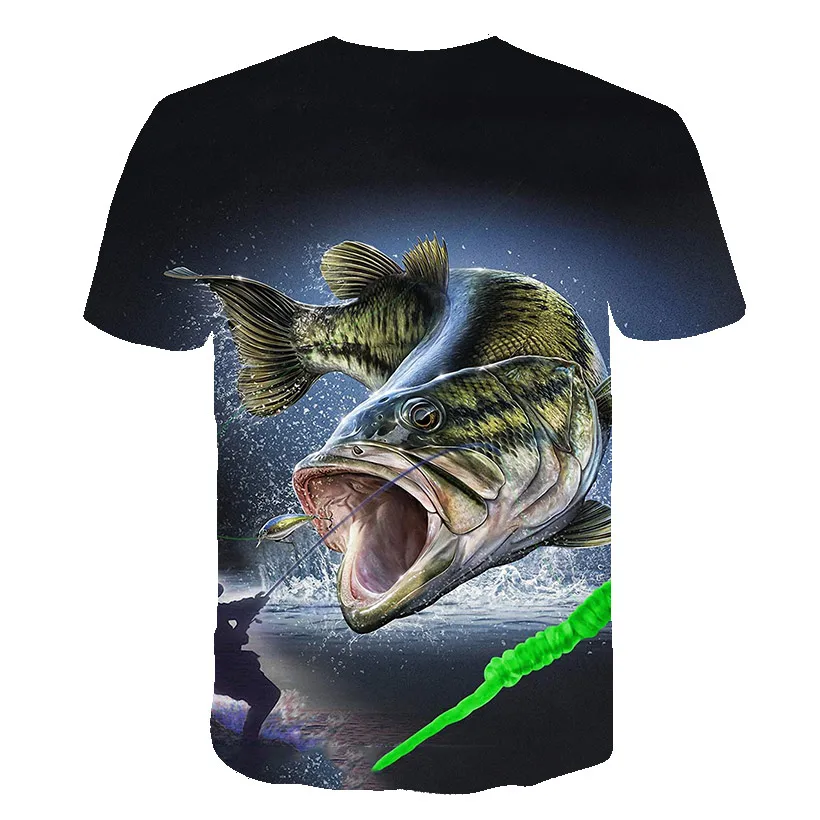 Летняя футболка с 3D-принтом рыбы, футболка с круглым вырезом для м...