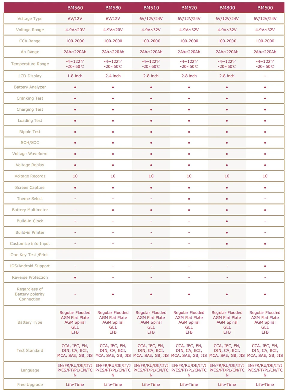 BM560-это профессиональное оборудование для тестирования батареи. Это экономичный метод тестирования батареи. Это гарантирует, что вы находитесь в хорошей форме, прежде чем отправиться в путь.