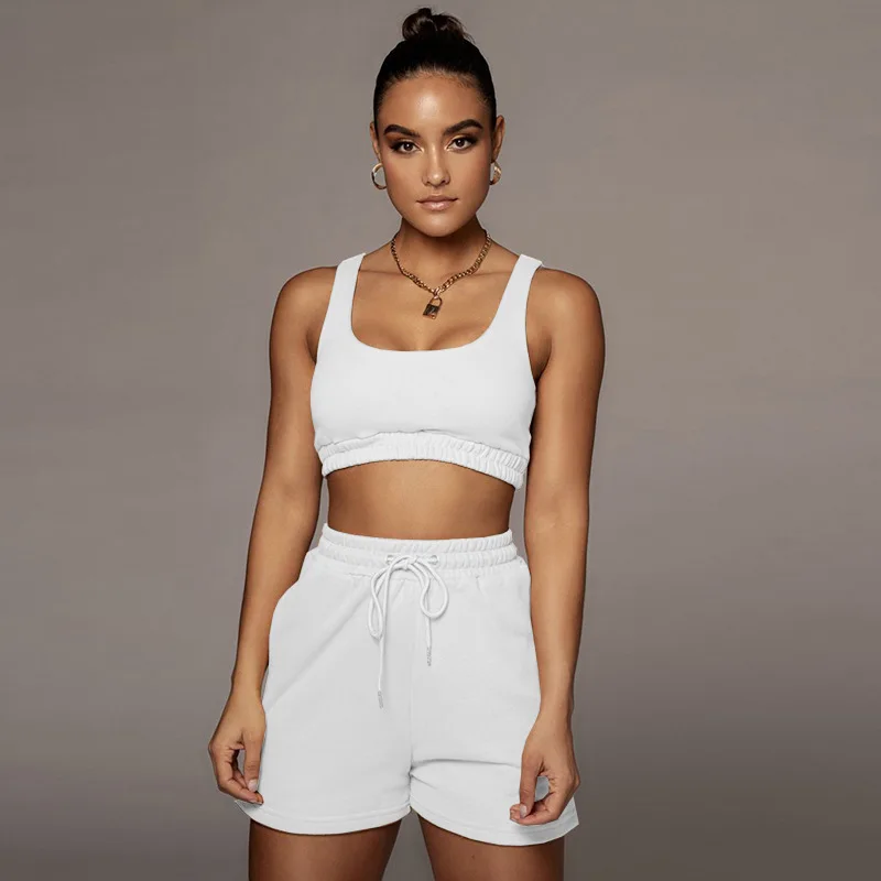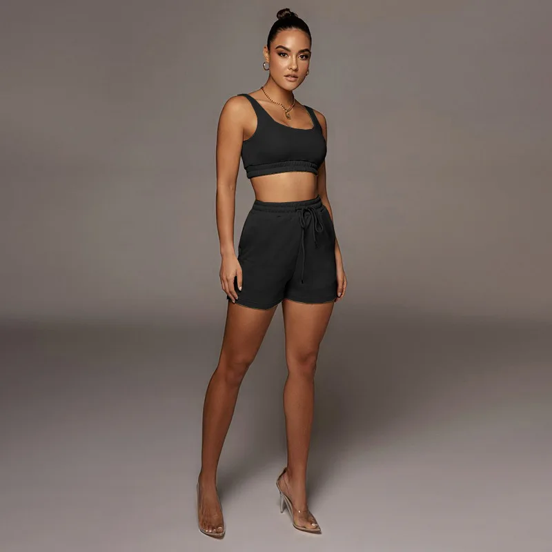 Летний комплект из двух предметов с шортами, Женский Повседневный Спортивный костюм, эластичный Топ и свободные Эластичные Мини-шорты с высокой талией, комплект из двух предметов 2021