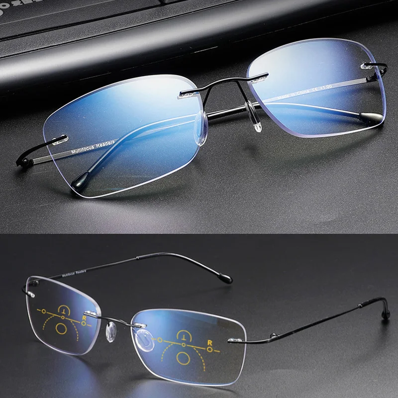 Многофокальные пресбиопические очки без оправы 2021 для мужчин и женщин, с защитой от сисветильник, из титанового сплава, 2,5