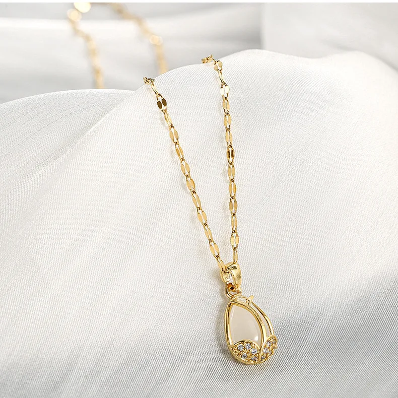 В форме тюльпана от опал ожерелье с подвеской для женщин 2020 модное ювелирное изделие, ожерелье из титановой стали с золотым покрытием класса люкс южнокорейское дизайнерское Стиль элегантный