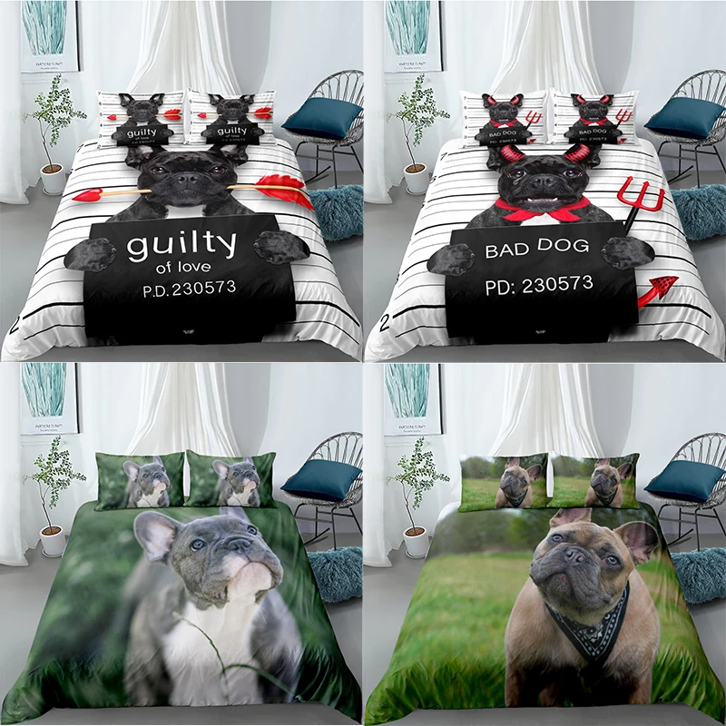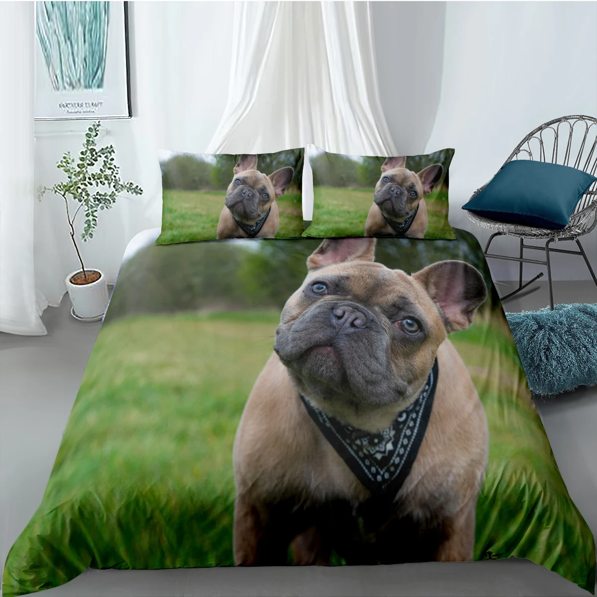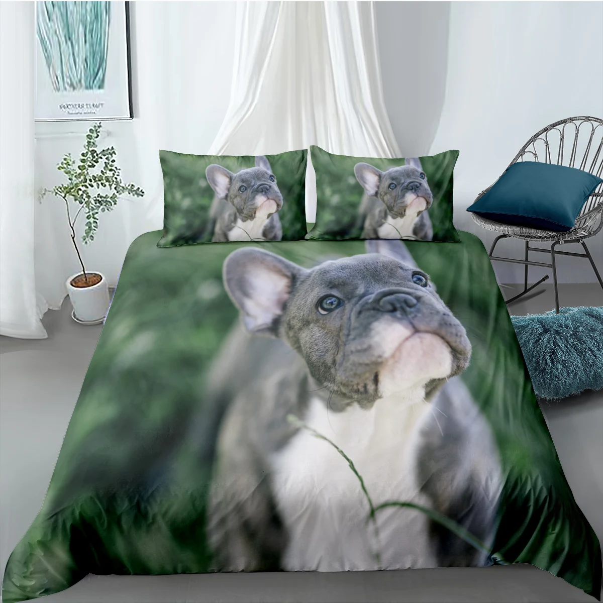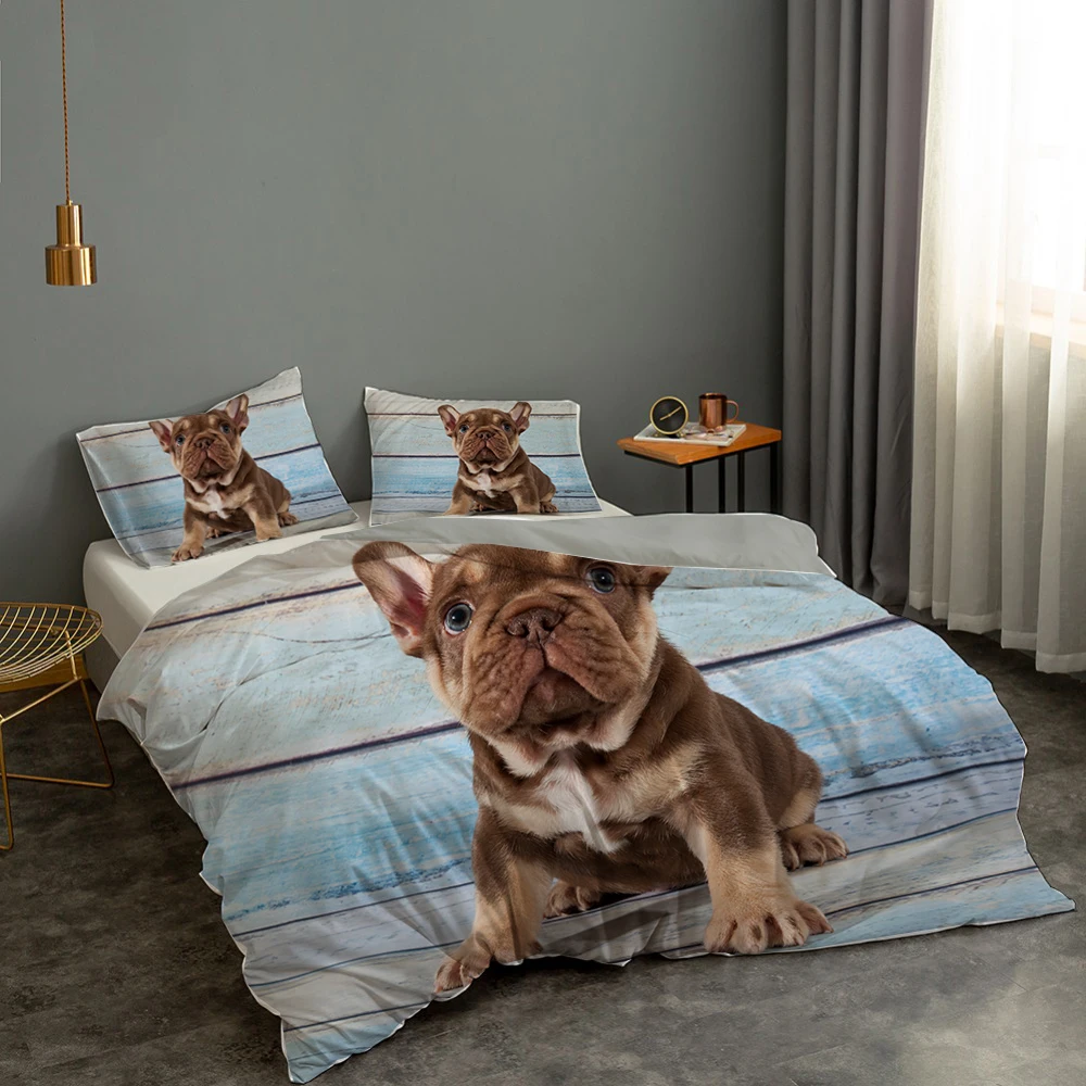 Комплект постельного белья с 3d-рисунком французского бульдога, пододеяльник для детей и взрослых, королевский комплект постельного белья для 2 человек, мягкий легкий теплый
