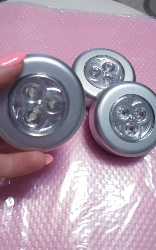 Простота в использовании, включение/выключение света только для прикосновения к верхней части света.Идеально подходит для вашей спальни, ванной комнаты, лестницы, прихожей, кухни, шкафа и т. Д.Стильный дизайн, круглая форма и компактный размер света являются маленьким украшением для вашего дома.Быстрая установка, самоклеющаяся наклейка на обратной стороне, вы можете наклеить или повесить на любом месте, где вам нравится.Каждая СВЕТОДИОДНАЯ лампа принимает 3 светодиода в качестве источника света и питается от 3 батареек AAA, чтобы выдать яркий белый свет для освещения.Спецификация:Материал: АБС-пластика.Размер: 6,6*2 см.Цвет: как на фотографии.Источник питания: 3*1,5 в батарейки AAA (не входят в комплект).Примечание:Из–за разных компьютерных разрешений может быть небольшое цветовое искажение.Возможны незначительные отклонения из-за различных измерений вручную.Посылка включает в себя:1 * ночник.