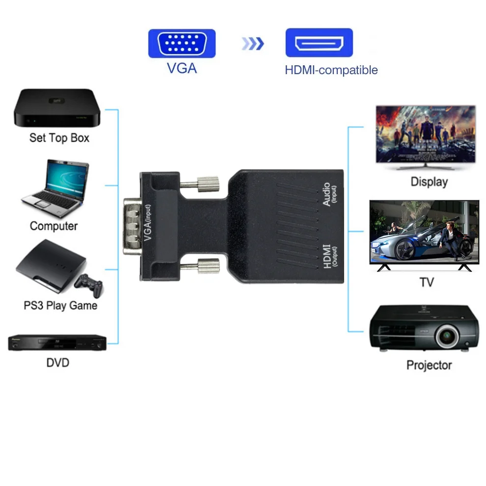 Переходник VGAHDMI, 1080p, преобразователь аудио, видео, для ПК, ноутбука, HDTV, проектора
