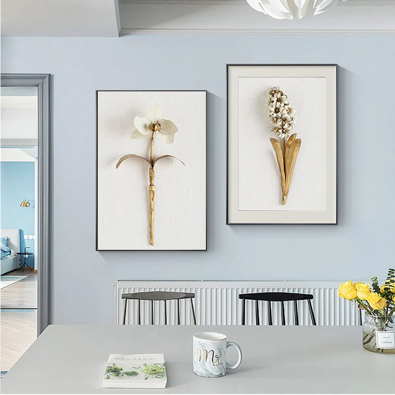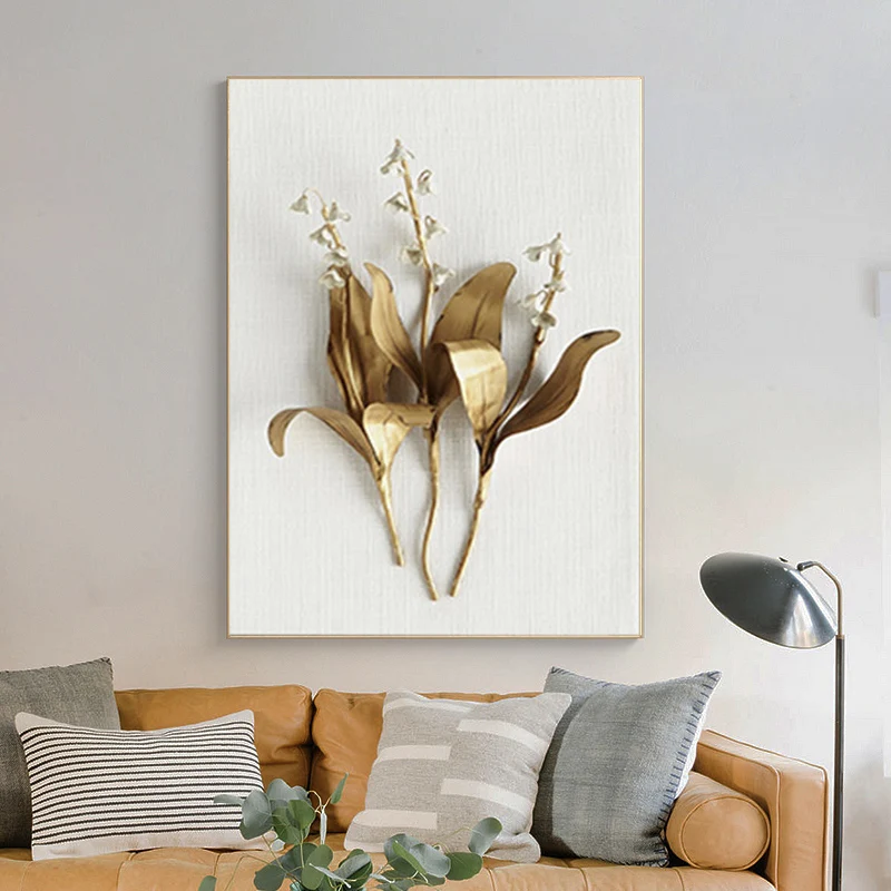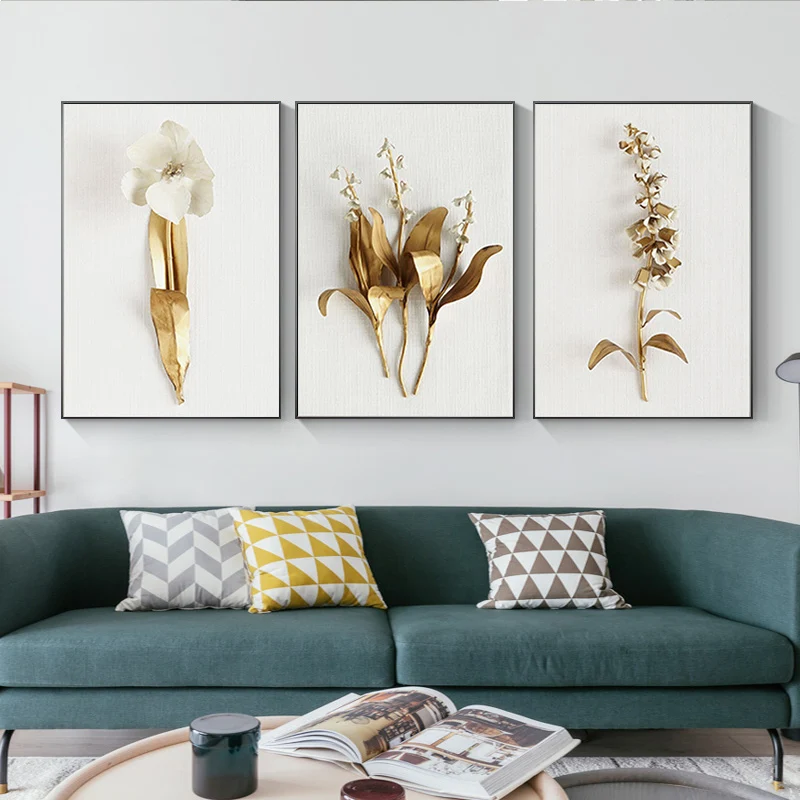 Картина на холсте с золотыми листьями и цветами, абстрактные постеры и скандинавские принты, Настенная картина для гостиной, домашний декор