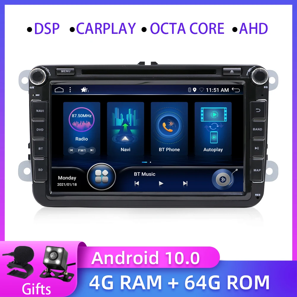 Автомагнитола DSP CARPLAY, мультимедийная стерео-система на Android 10, с GPS, для VWVolkswagen, Skoda Octavia, golf 5, 6, touran, passat B6, polo, Jetta, типоразмер 2 Din