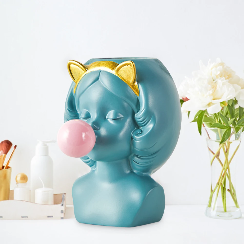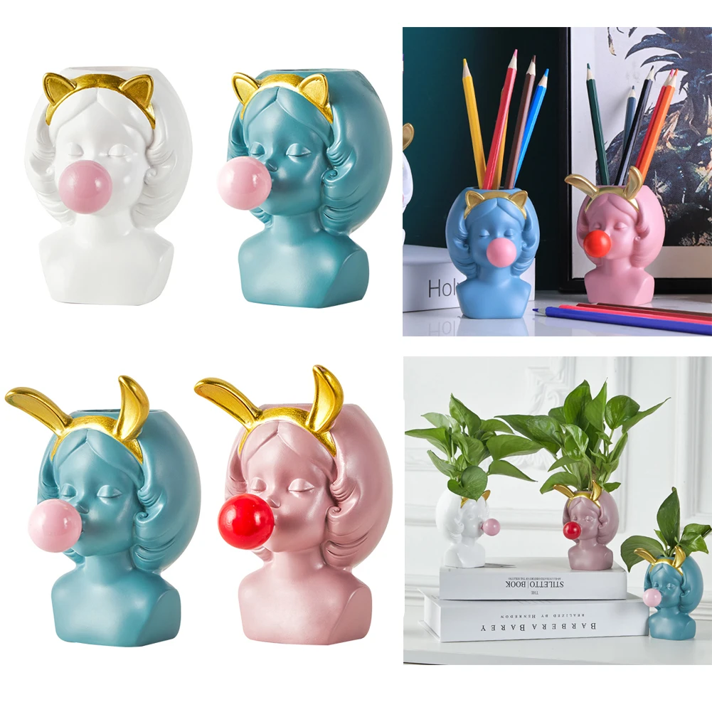 Милые девушки пускания мыльных пузырей кашпо для суккулентных растений виниловый, с изображением цветка горшок для дома Настольный Декор кистей для макияжа для хранения украшения