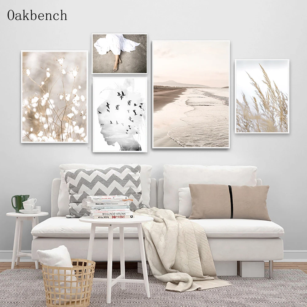 Пейзаж, печать на холсте, морской пляж, настенные картины, рисунок тростника, постер с чайками, абстрактные плакаты, скандинавские картины, Современный домашний декор