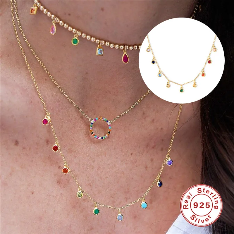 Ожерелье Plata De Ley 925 для женщин, градиентное циркониевое ожере...