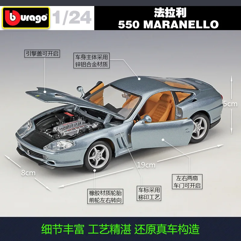 Модель автомобиля из сплава Bburago 1:24 FERRARI 550 MARANELLO, коллекционная игрушка в подарок