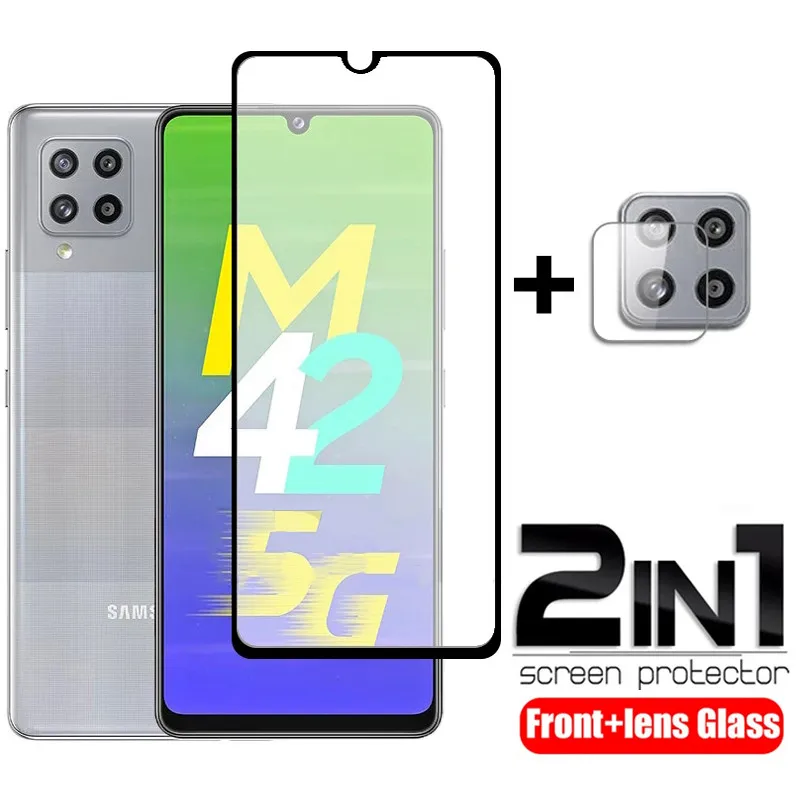2в1 Защитное стекло для Samsung Galaxy M42 M62 M12 A72 A52 5G m42 m12 полное покрытие Закаленное стекло Защитная пленка для экрана камеры