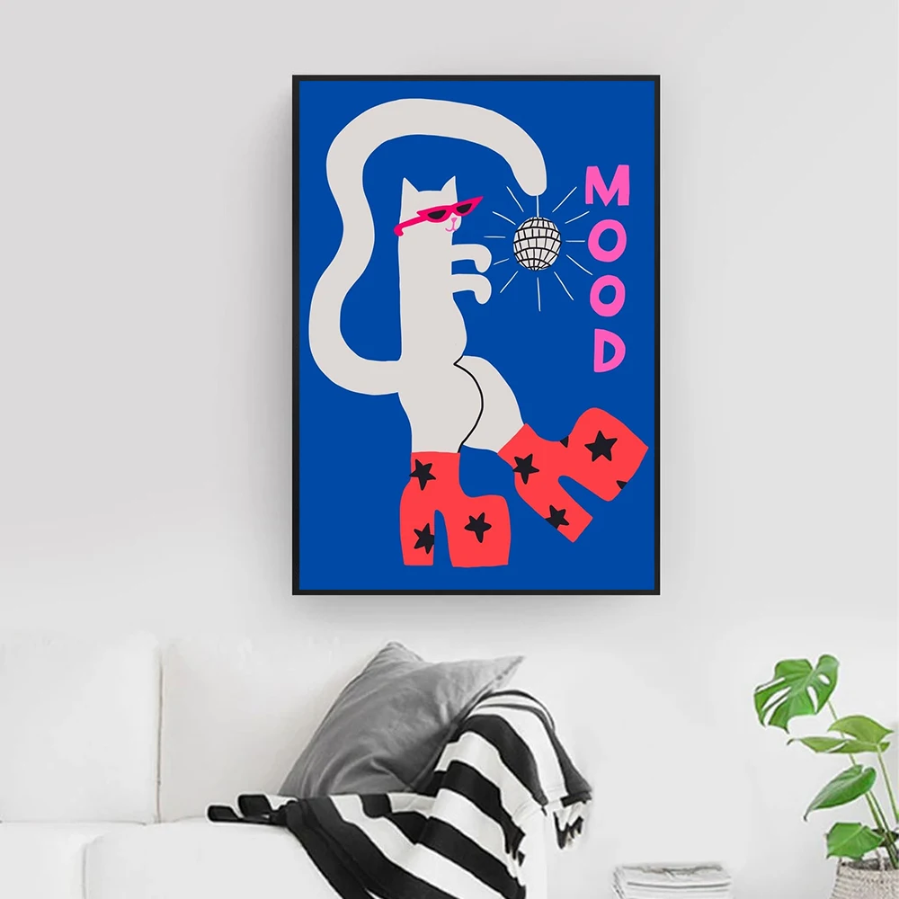 Плакат с мультяшным котом на высоких каблуках и модный принт домашних животных декоративные настенные картины для гостиной Детские Плакаты для детской
