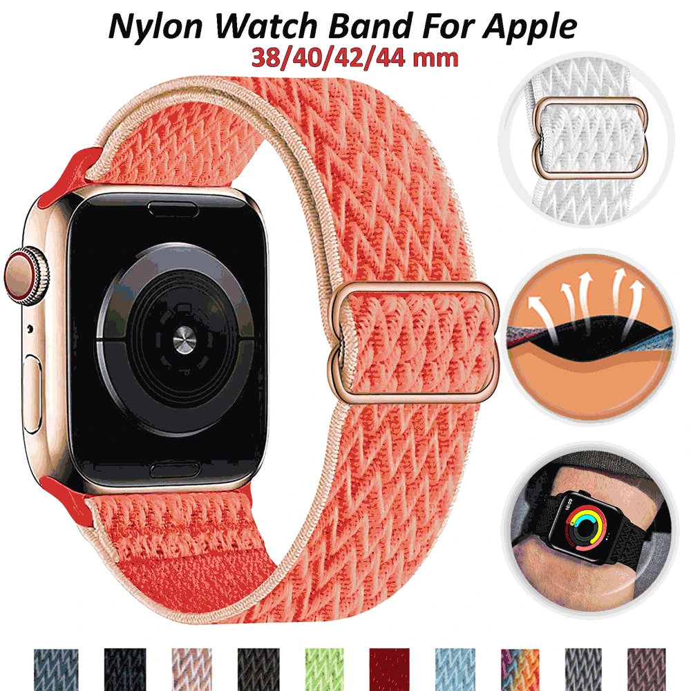 Ремешок для часов, нейлоновый, Плетеный, для Apple Watch 6, SE, 5, 4, регулируемый, мягкий, спортивный, 38 мм, 42 мм, 40 мм, 44 мм, для Iwatch Series 3, 2, 1