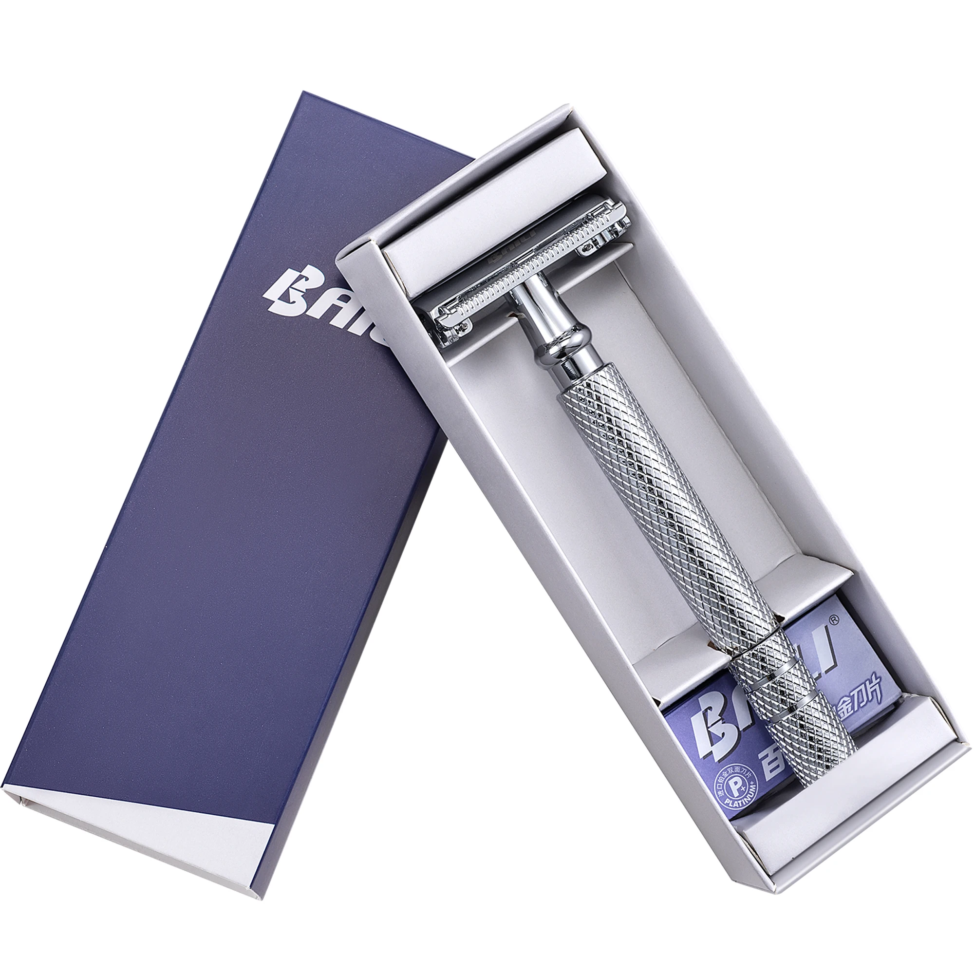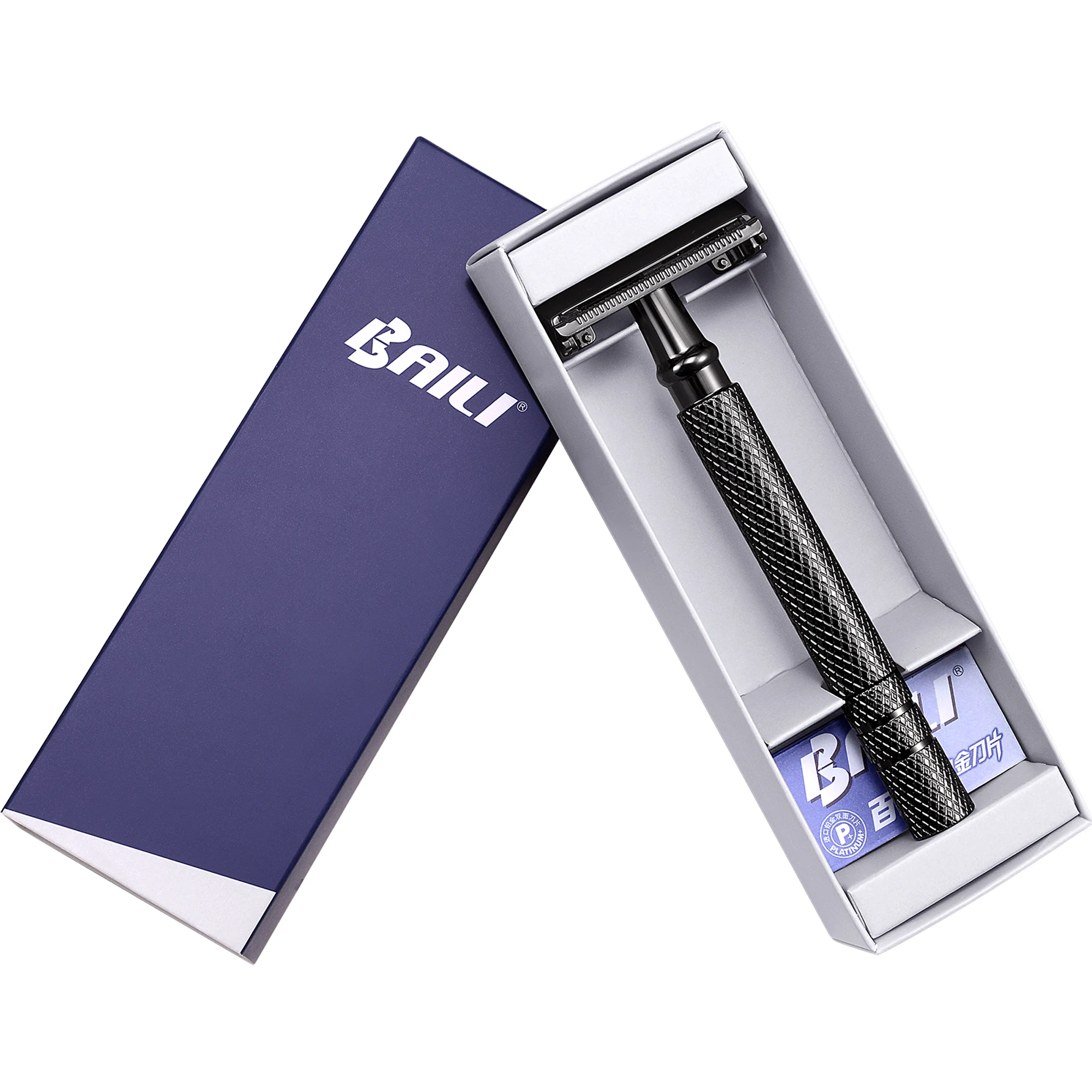 Мужская и Женская бритва BAILI Butterfly TTO с длинной ручкой, два лезвия, безопасное бритье, 10 лезвия Platinum серебристых черных лезвий
