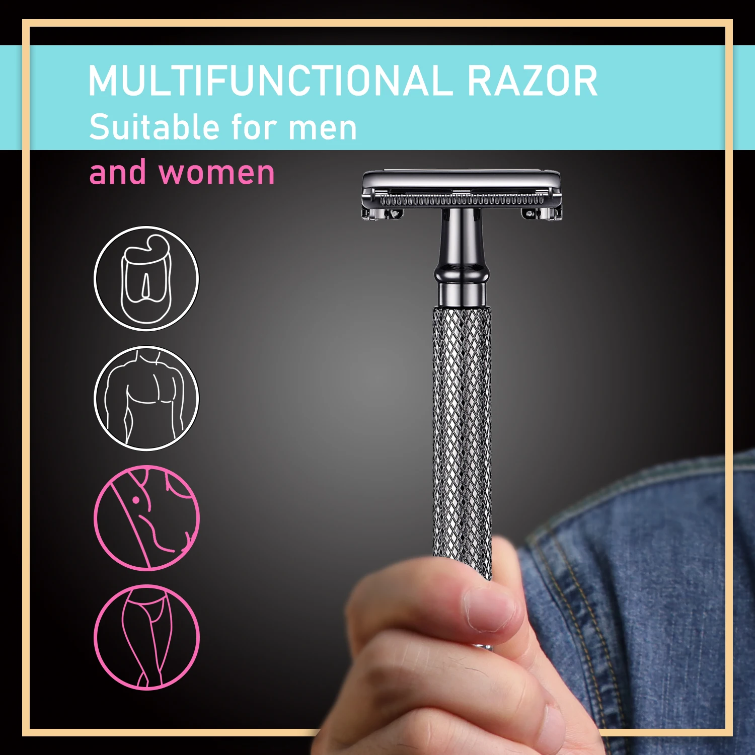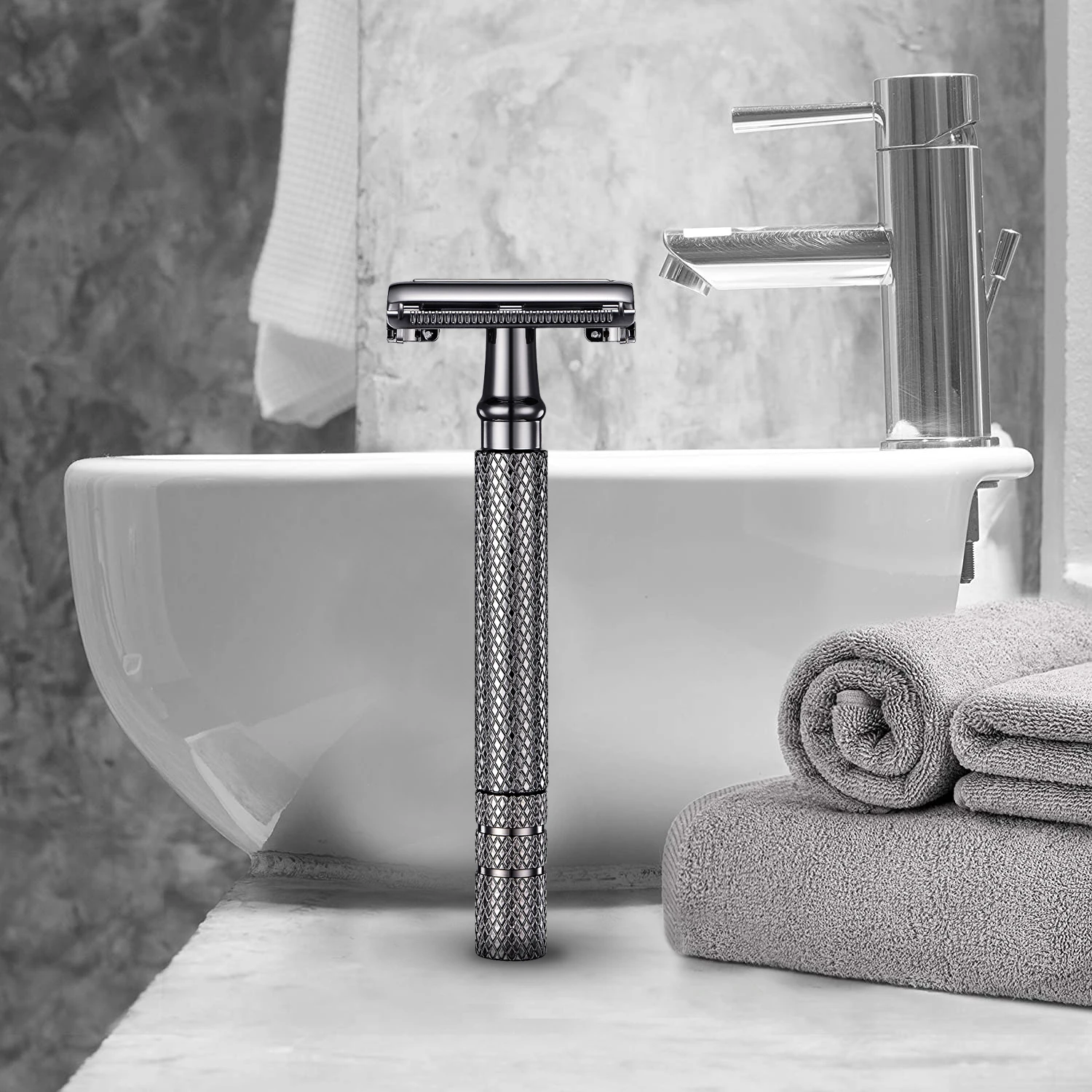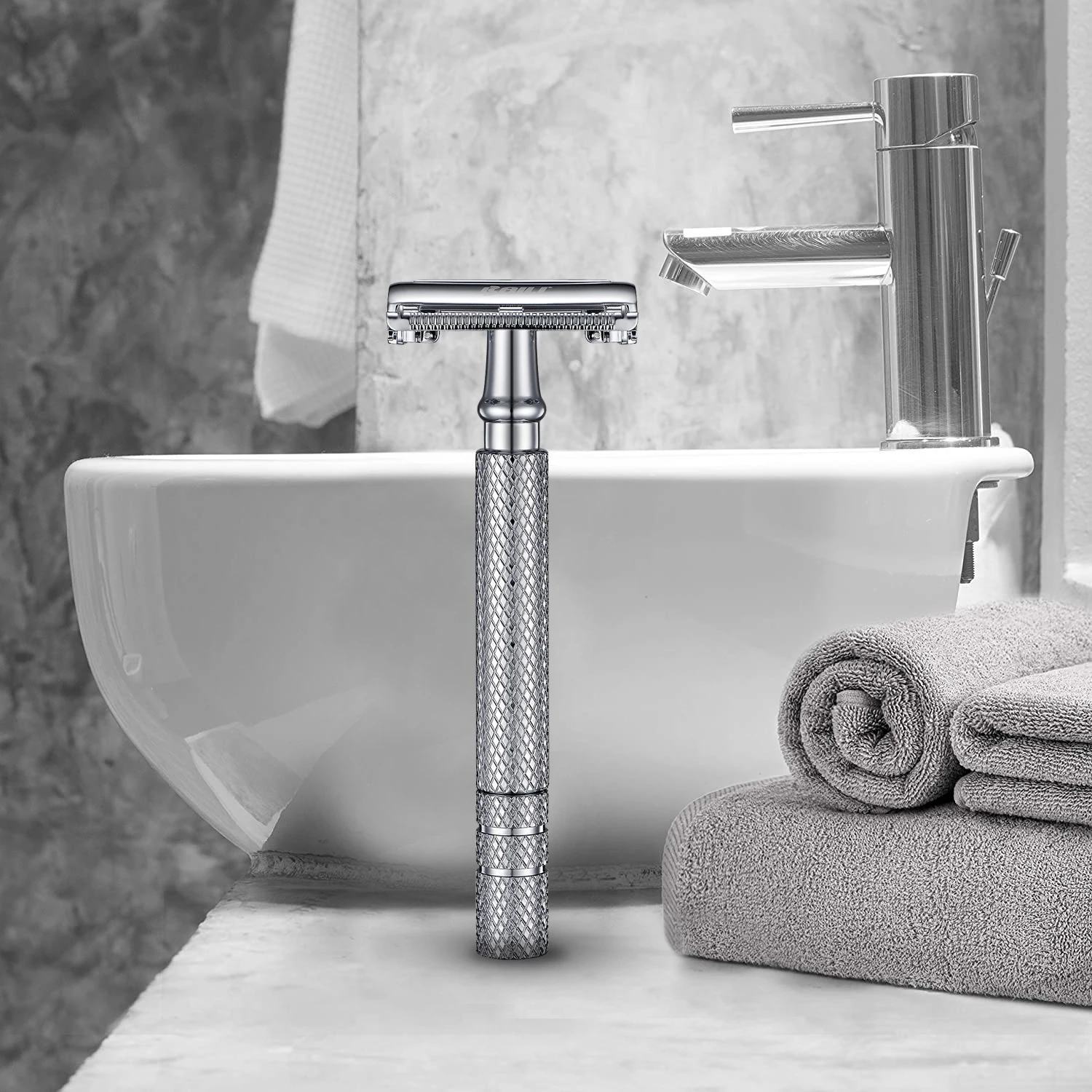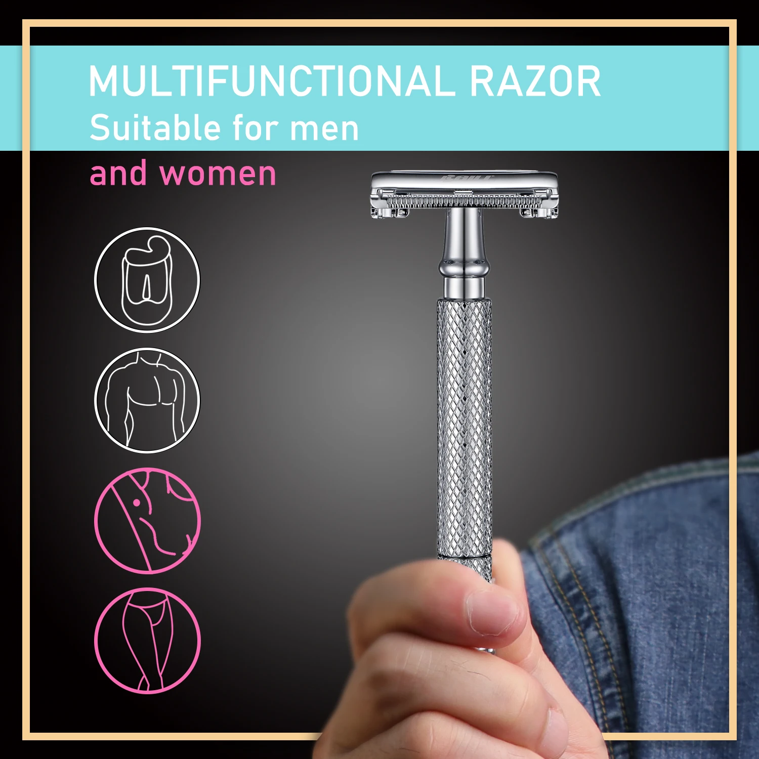 Unique Stepless Adjustable feature provides you gentle, close and smooth shave. Shaving with a safety razor will also eliminate the skin irritation and give your face a clean healthy look. Avoid dry shaving, which is the fastest ways to mess with your skin as it often leads to bleeding and razor burn. In order to get a smooth shave, we suggest splash your face with hot water at least, to soften your bristly hairs and open your pores before shaving.