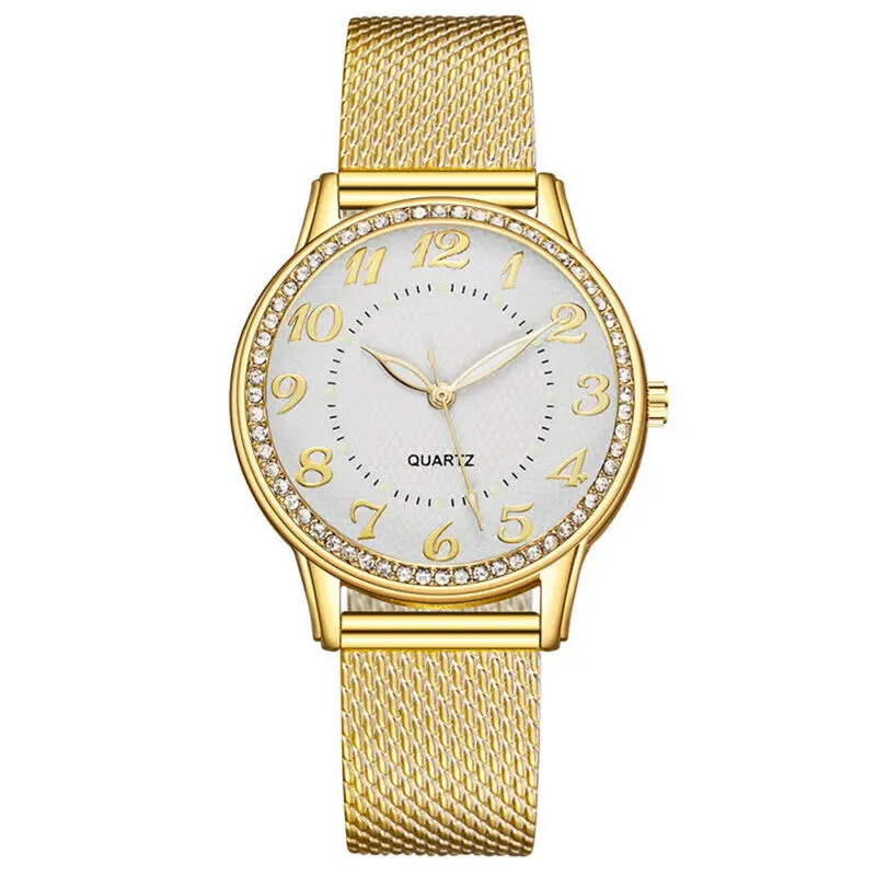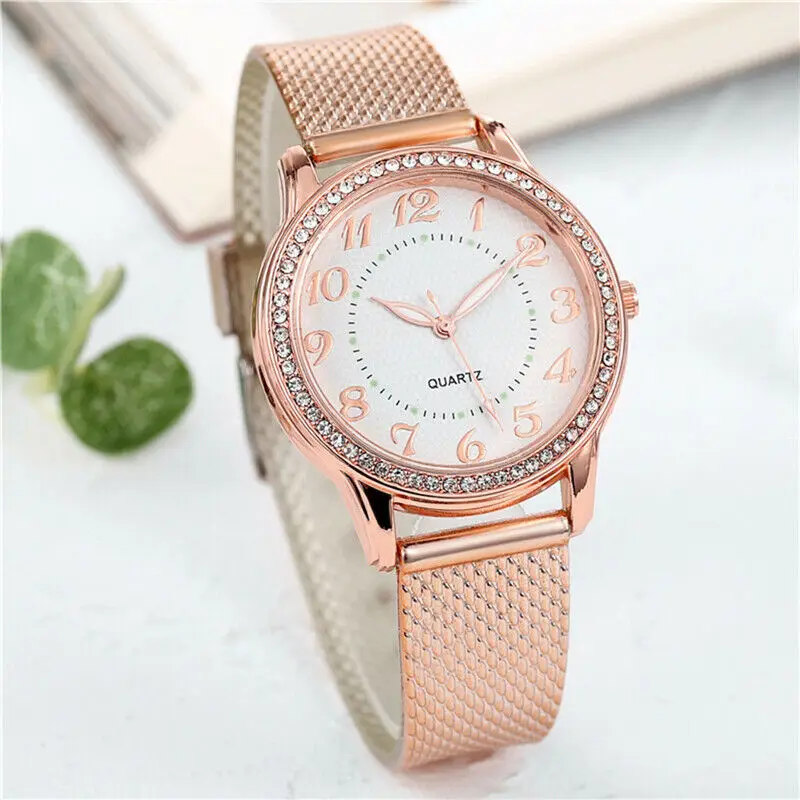 Новинка 2021, модные светящиеся кварцевые часы Стразы унисекс с сетчатым браслетом