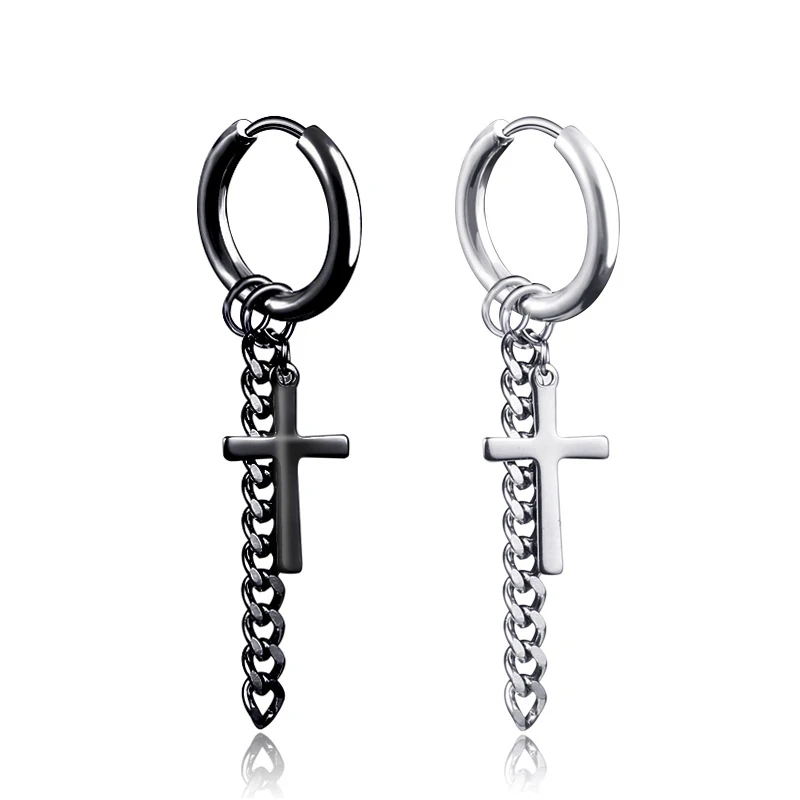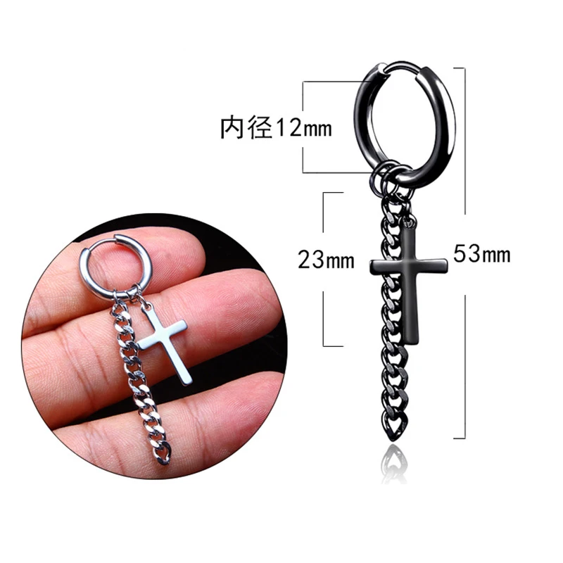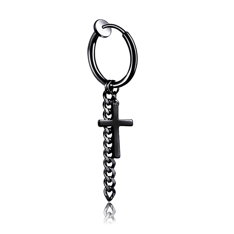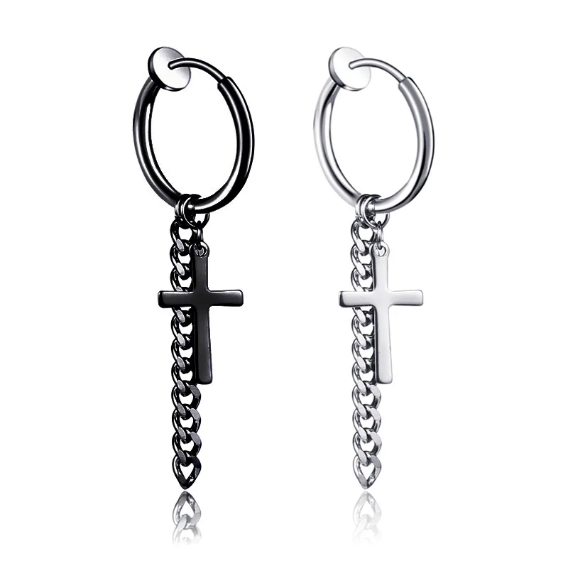1 пара 2 шт титановая стальная звеньевая цепочка с кисточкой серьги-капли с крестиком для мужчин рок ювелирные изделия с отверстием для ушей или без них