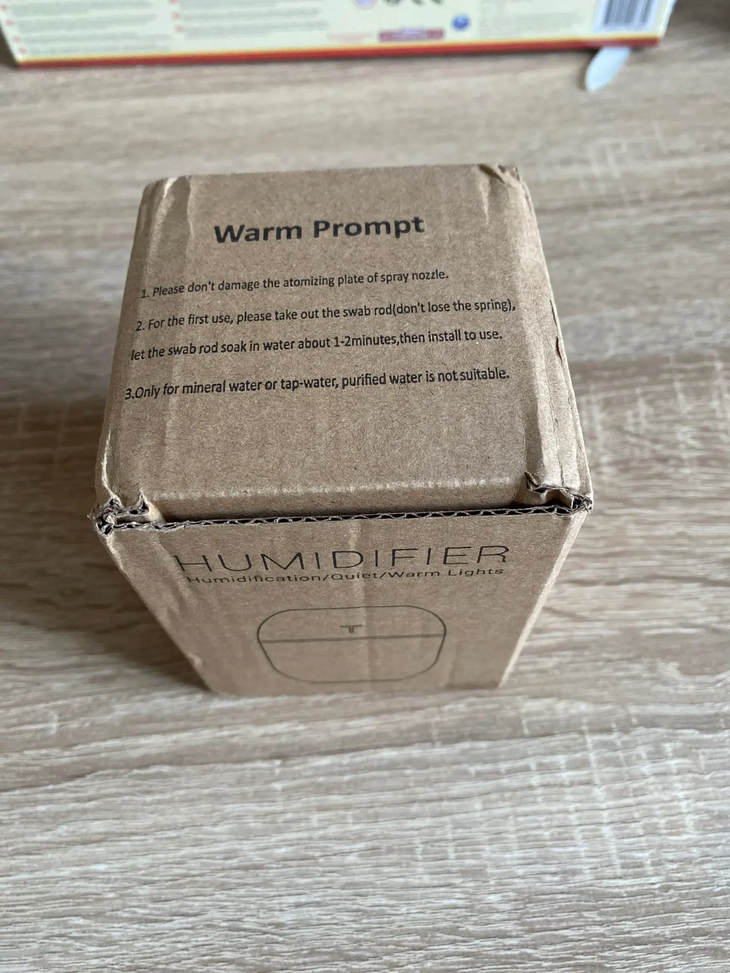 товар доставлен очень быстро за 2 недели до Вологодской области, хоть упаковка и была смята при перевозке, увлажнитель в рабочем состоянии, есть несколько программ работы, подсветка разными цветами, в целом покупкой довольна, но в комплект положено только два фильтра, поэтому ставлю за продукт 4 звездочки