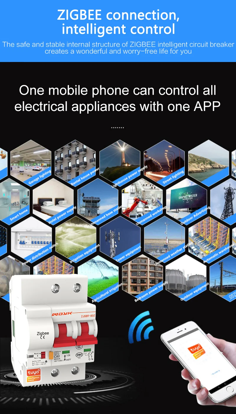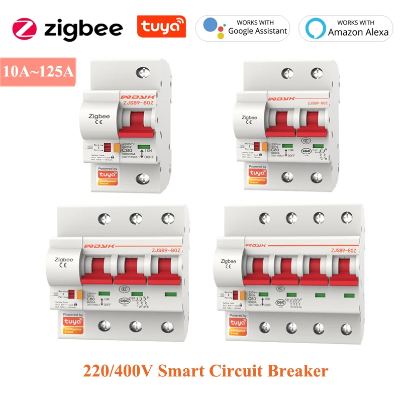 220400V Tuya Zigbee 3 умный выключатель 1P 2P 3P 4P IoT воздушный выключатель, Поддержка APP дистанционного Управление Alexa Google домашней автоматизации