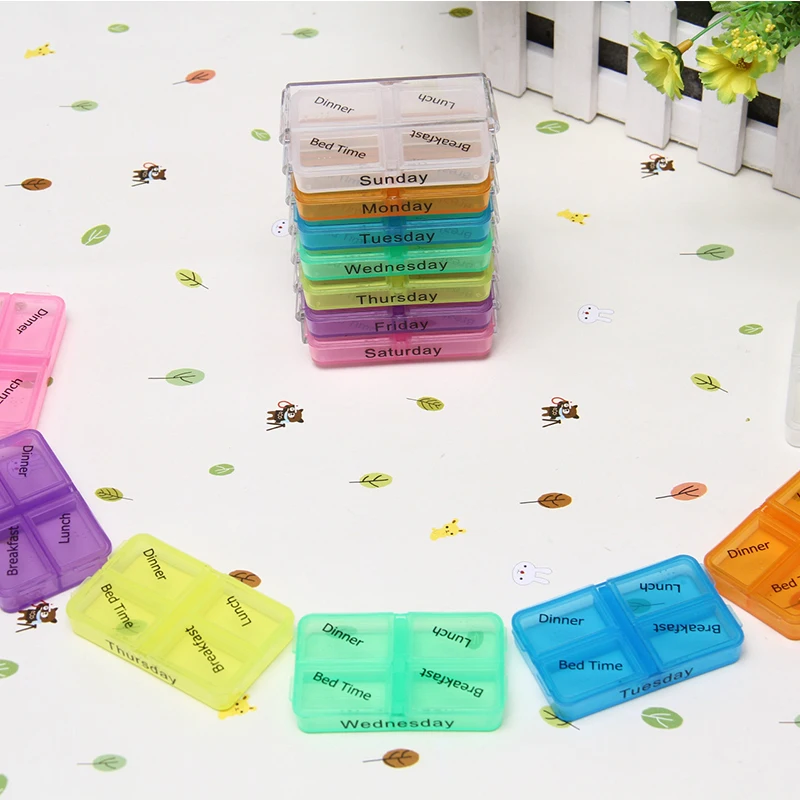7-слойная складные коробки пилюльки утро ночь таблеток для использования в органайзер, хранилище для Контейнер чехол для Инструменты для здоровья Особенности:Портативный размер, легко carrry везде.Прост в использовании и применении.Его можно использовать для хранения таких предметов, как таблетки, конфеты, жевательная резинка и т. Д. Есть 7 слоев по 4 слоя, каждая из которых состоит из 28 небольших клеток. Различные виды таблеток могут быть размещены. Различные цвета можно отличить. Вы также можете напомнить вам о времени приема лекарств. Более удобно носить слои отдельно, и его можно поместить в карман, не занимая места! Спецификация:В целом 10,5*7,7*4,5 смМатериал: ПП + пс Посылка включает в себя:1 * медсин коробка