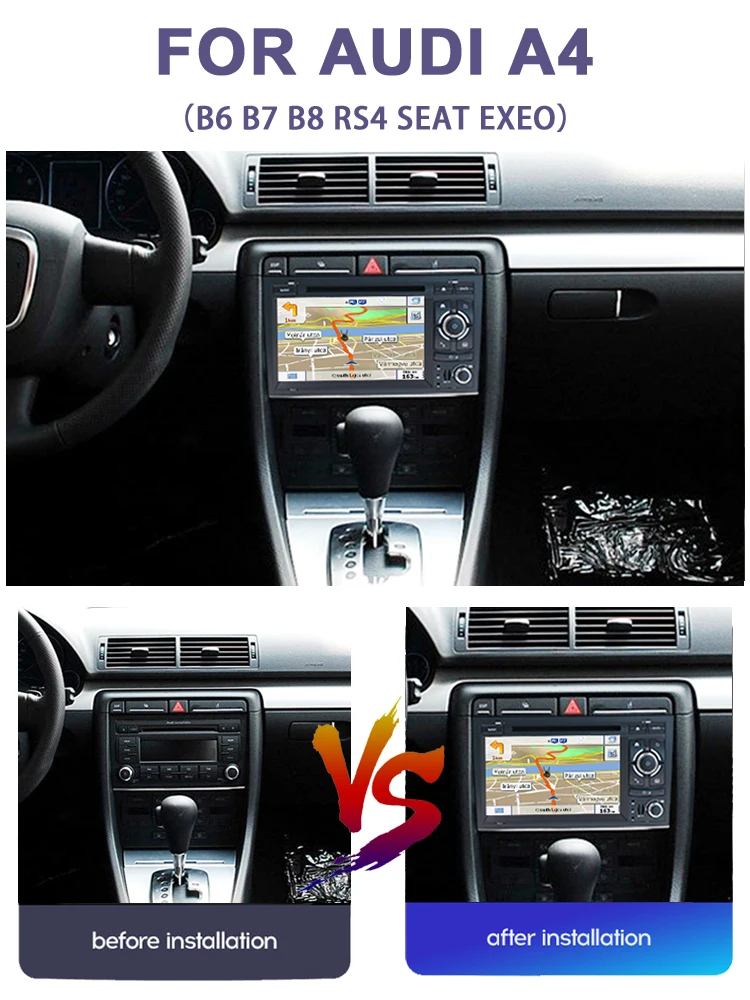 Для Audi A4 B6 (8E/8н)(2000-2006)Для Audi A4 B7 (8E/8н)(2004-2008)Для Audi S4 B7 (8E/8н) (2005-2008)Для Audi S4 B6 (8E/8н)(2003-2005)Для Audi RS4 (2002 -2008)Для Audi RS4 B7 (8E) (2006-2008)Для Audi Seat Exeo(2008-2012)Хотя мы приложили все усилия, чтобы убедиться, что данное устройство будет совместимо с указанными транспортными средствами, пожалуйста, проверьте год, размеры и форму центральной консоли ваших транспортных средств перед покупкой.